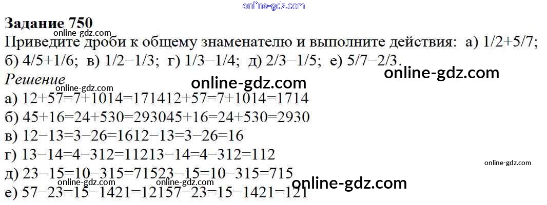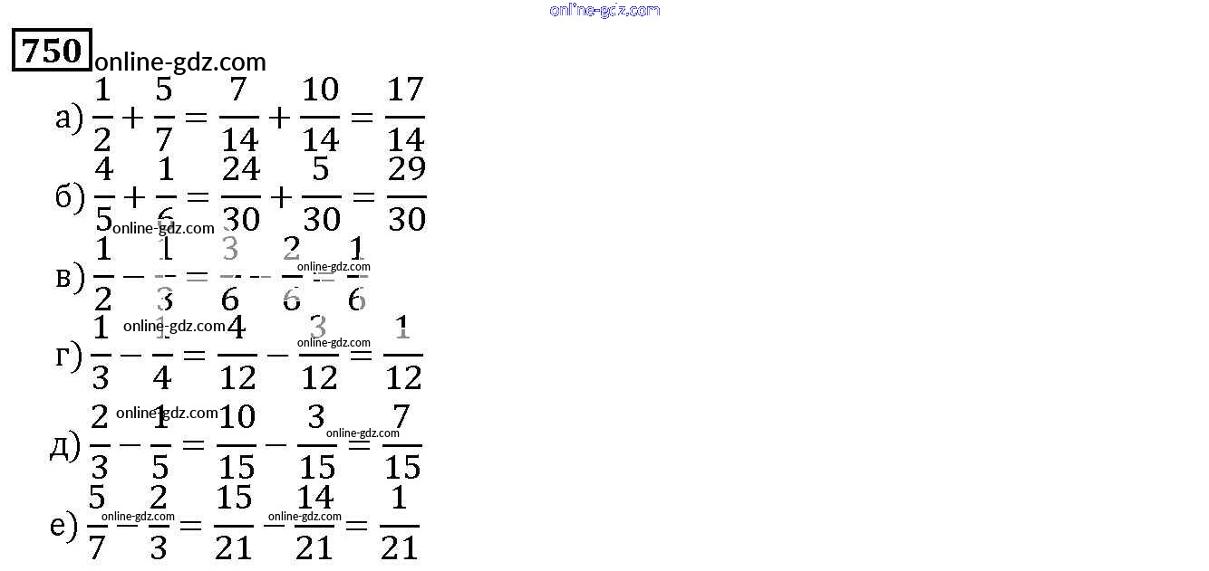 Готовые домашние задания по Математике за 5 класс Учебник Дорофеев, Шарыгин 2015 - 9.1. Сложение и вычитание дробей Глава 9. Действия с дробями 750