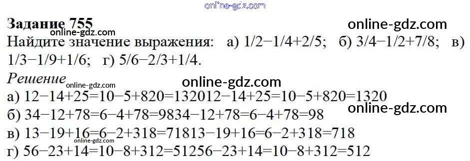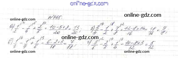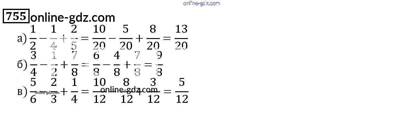 Готовые домашние задания по Математике за 5 класс Учебник Дорофеев, Шарыгин 2015 - 9.1. Сложение и вычитание дробей Глава 9. Действия с дробями 755