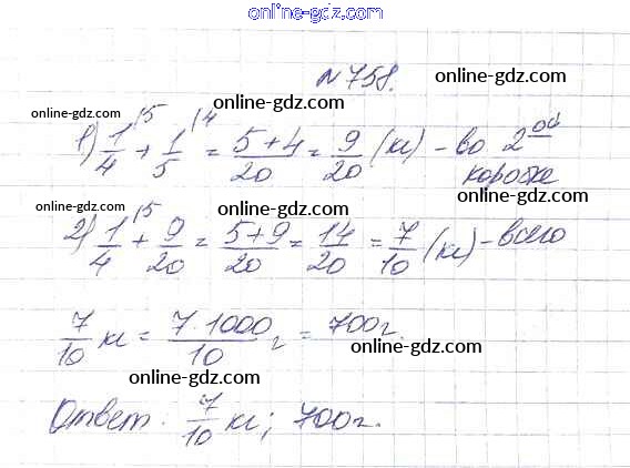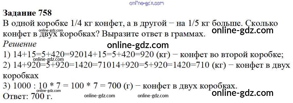 Готовые домашние задания по Математике за 5 класс Учебник Дорофеев, Шарыгин 2015 - 9.1. Сложение и вычитание дробей Глава 9. Действия с дробями 758