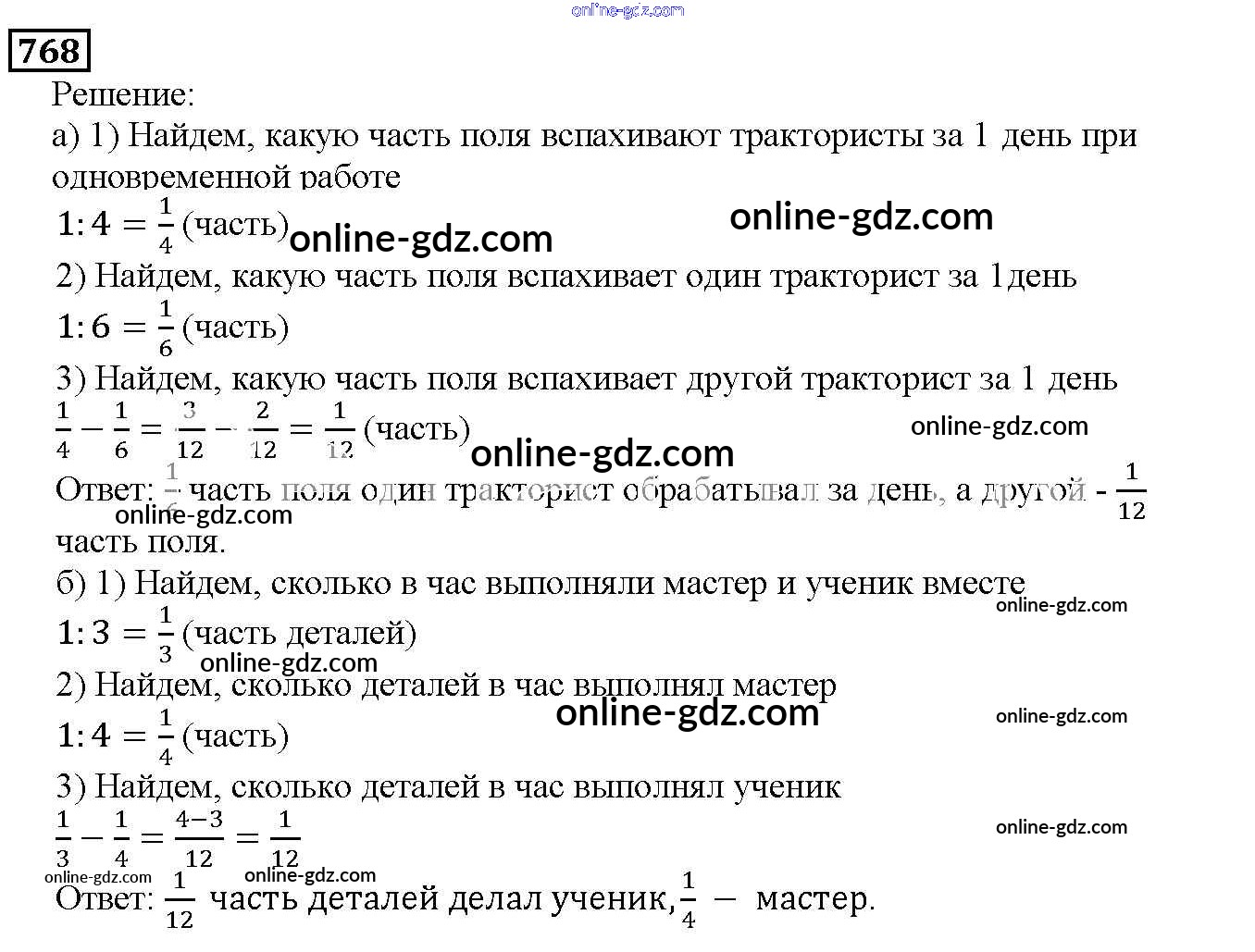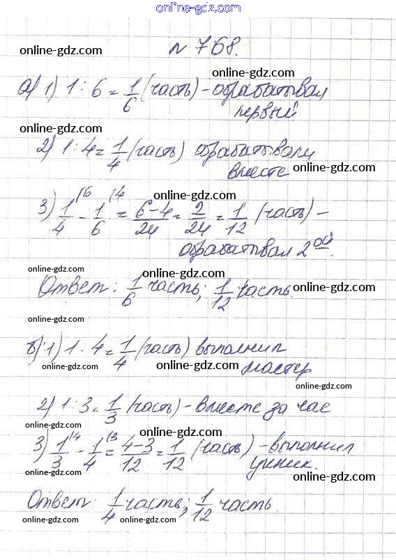 Готовые домашние задания по Математике за 5 класс Учебник Дорофеев, Шарыгин 2015 - 9.1. Сложение и вычитание дробей Глава 9. Действия с дробями 768