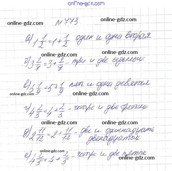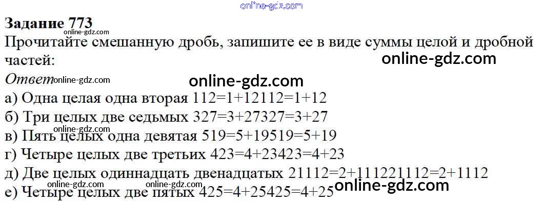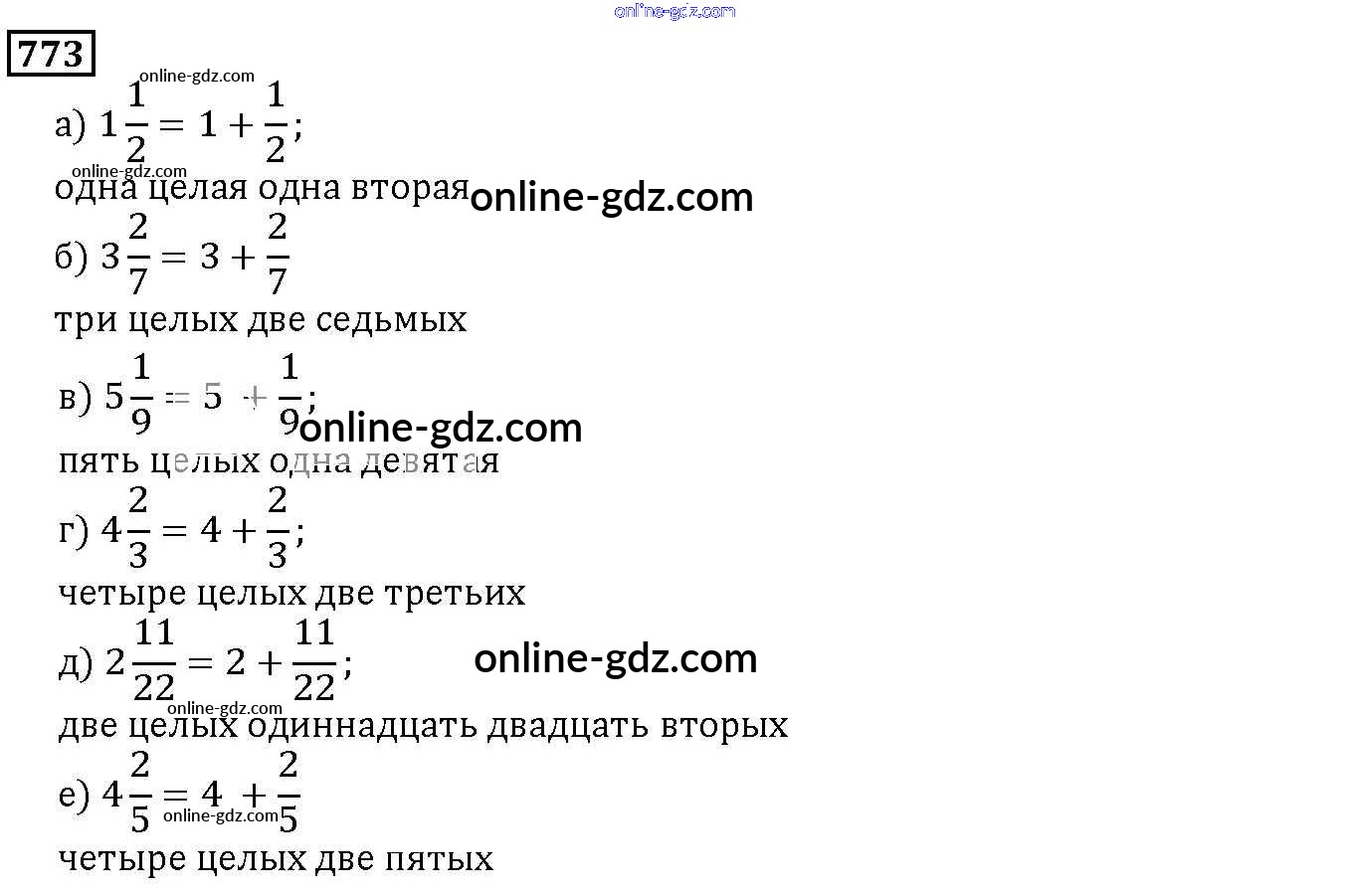 Готовые домашние задания по Математике за 5 класс Учебник Дорофеев, Шарыгин 2015 - 9.2. Смешанные дроби Глава 9. Действия с дробями 773