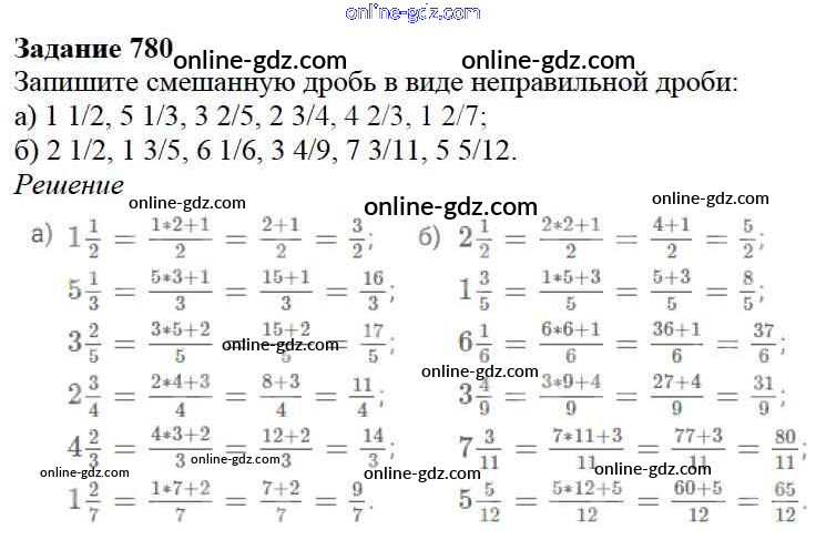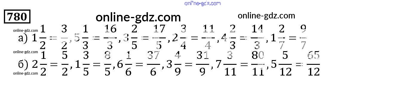 Готовые домашние задания по Математике за 5 класс Учебник Дорофеев, Шарыгин 2015 - 9.2. Смешанные дроби Глава 9. Действия с дробями 780