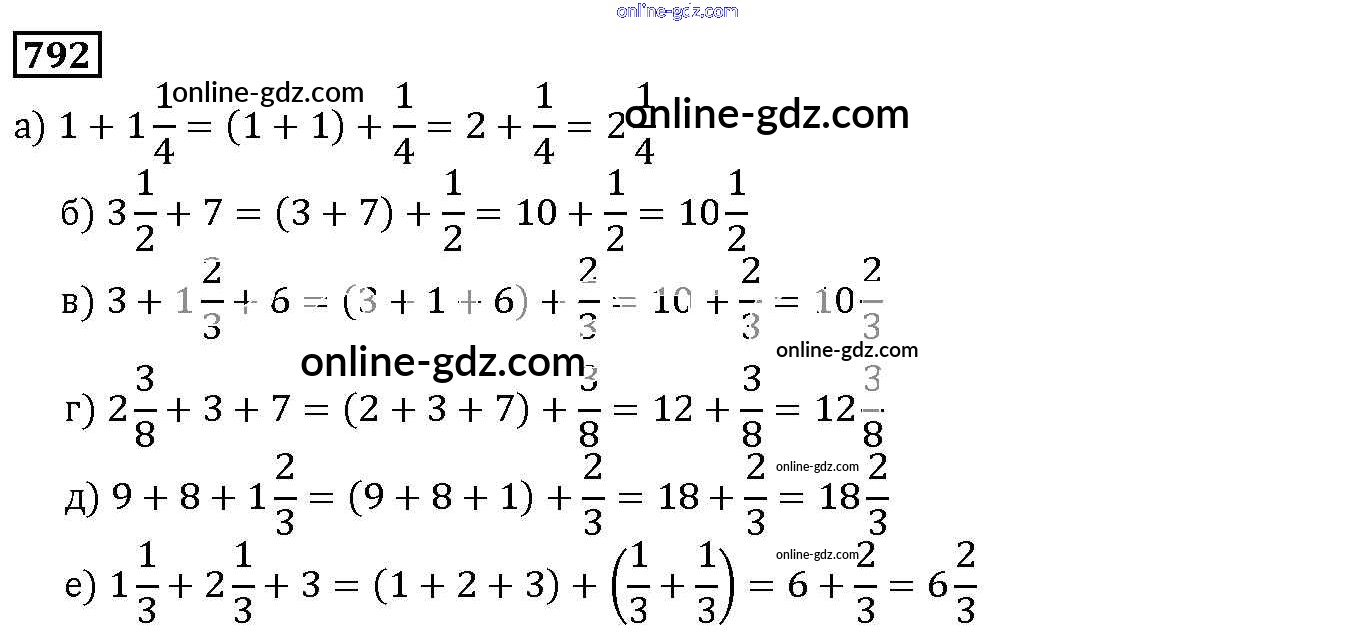 Готовые домашние задания по Математике за 5 класс Учебник Дорофеев, Шарыгин 2015 - 9.3. Сложение и вычитание смешанных дробей Глава 9. Действия с дробями 792