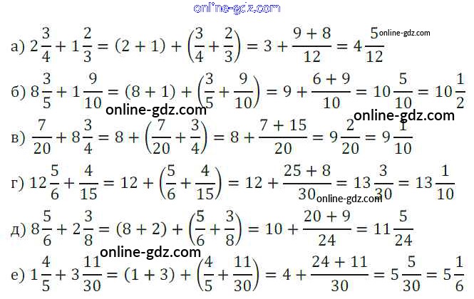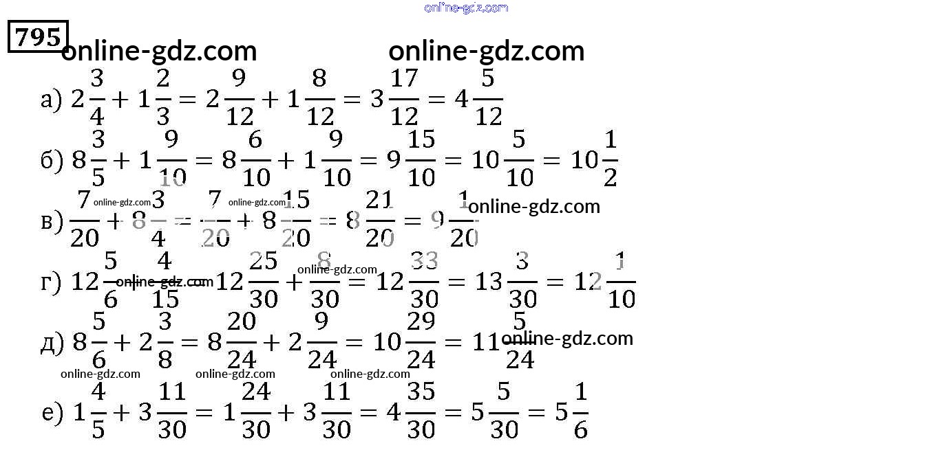 Готовые домашние задания по Математике за 5 класс Учебник Дорофеев, Шарыгин 2015 - 9.3. Сложение и вычитание смешанных дробей Глава 9. Действия с дробями 795