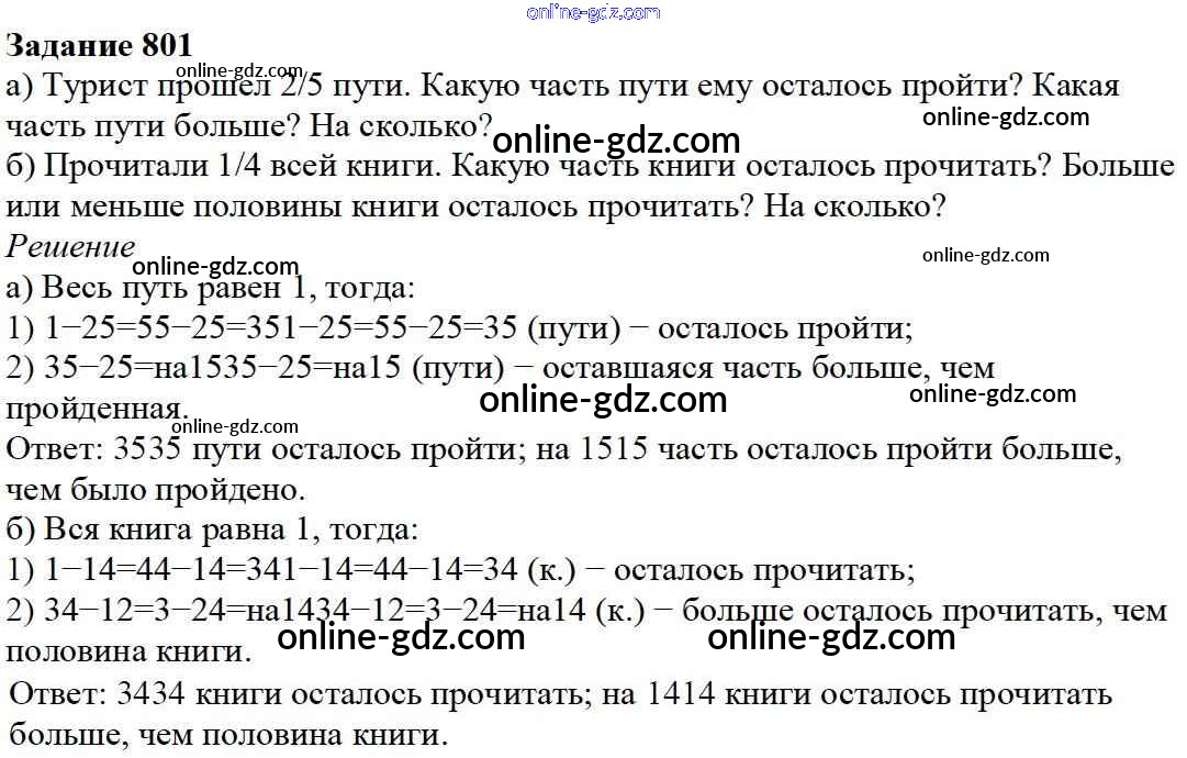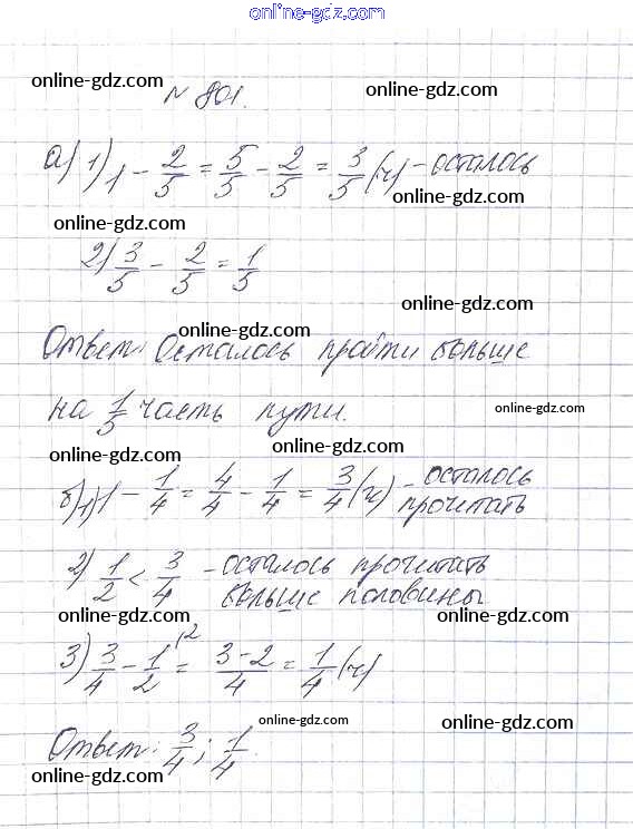 Готовые домашние задания по Математике за 5 класс Учебник Дорофеев, Шарыгин 2015 - 9.3. Сложение и вычитание смешанных дробей Глава 9. Действия с дробями 801