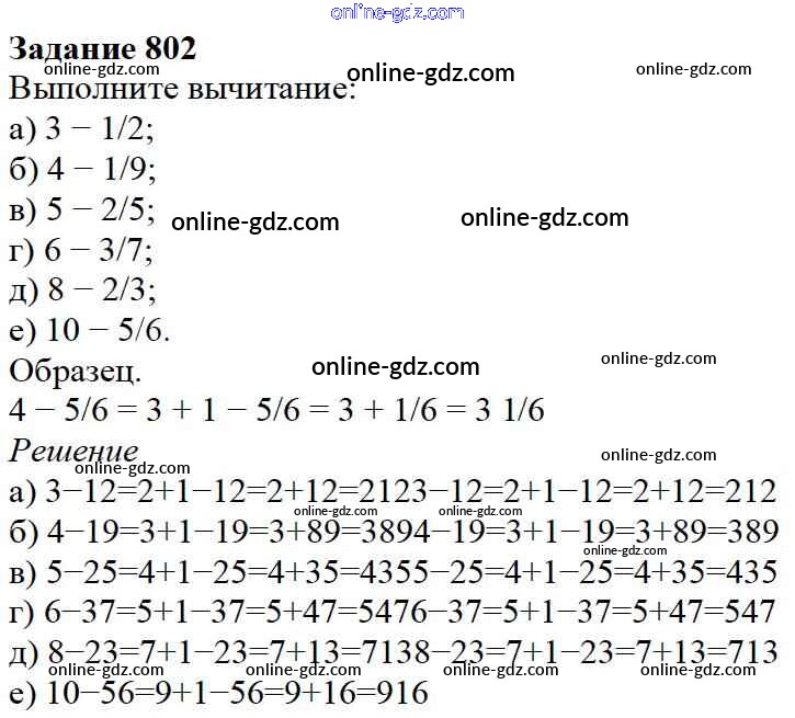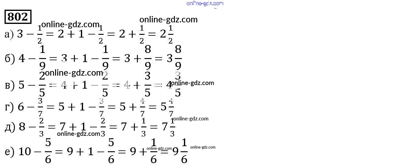 Готовые домашние задания по Математике за 5 класс Учебник Дорофеев, Шарыгин 2015 - 9.3. Сложение и вычитание смешанных дробей Глава 9. Действия с дробями 802