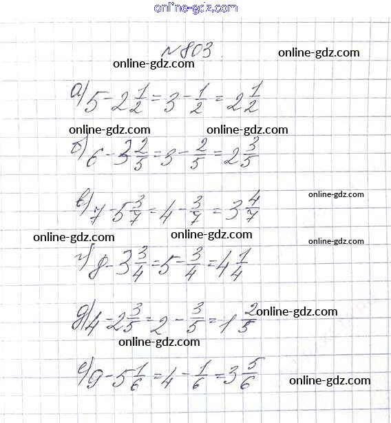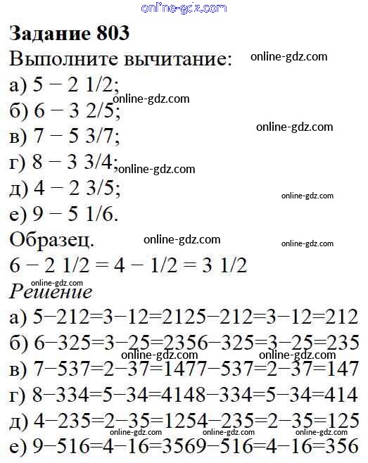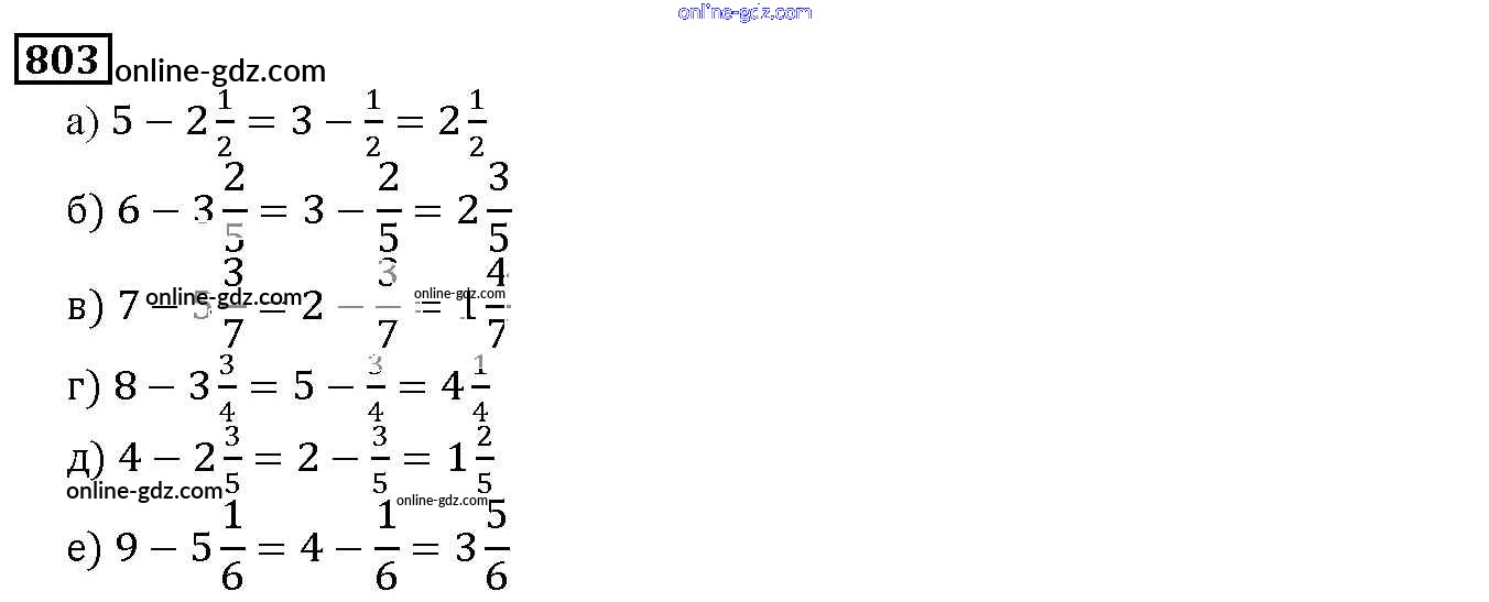 Готовые домашние задания по Математике за 5 класс Учебник Дорофеев, Шарыгин 2015 - 9.3. Сложение и вычитание смешанных дробей Глава 9. Действия с дробями 803
