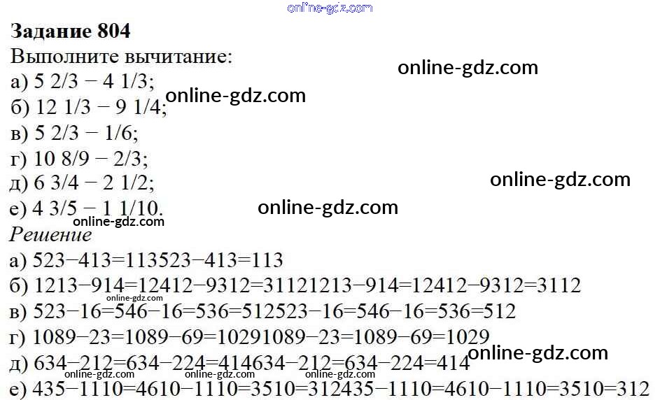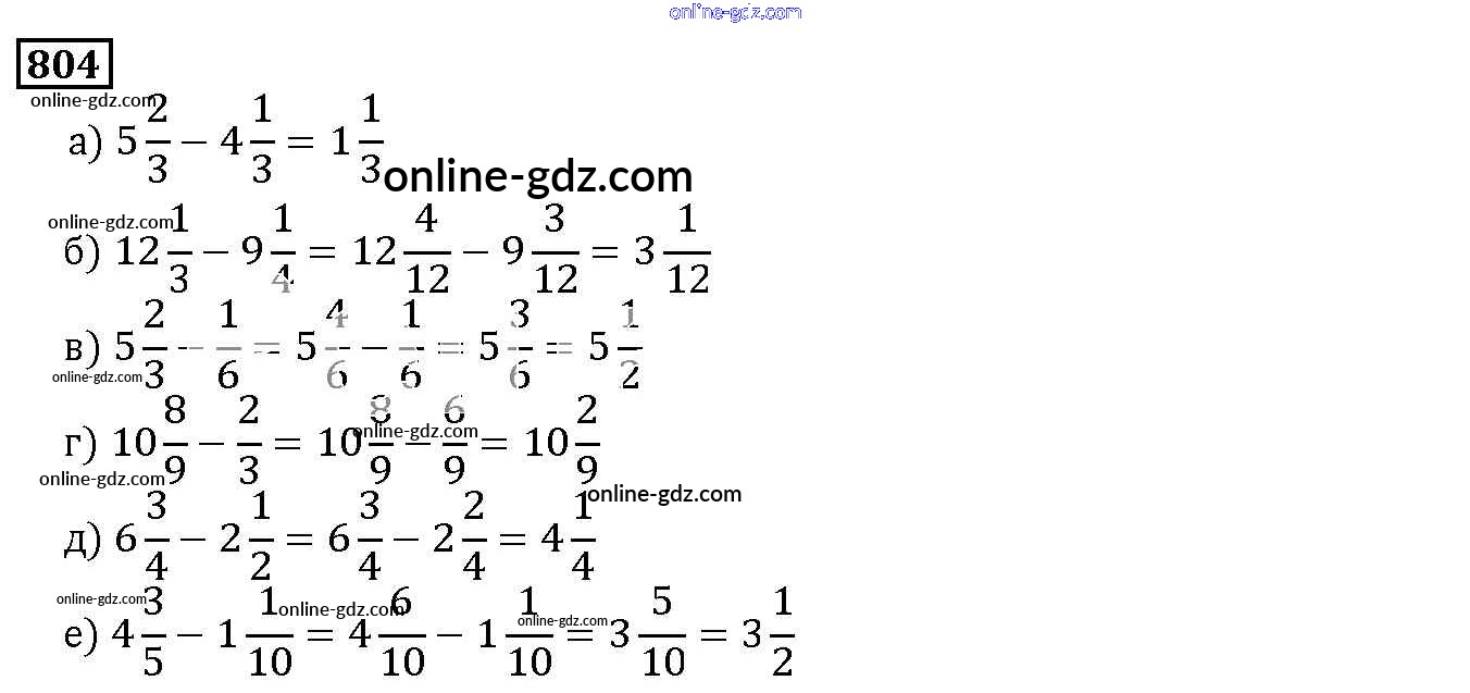 Готовые домашние задания по Математике за 5 класс Учебник Дорофеев, Шарыгин 2015 - 9.3. Сложение и вычитание смешанных дробей Глава 9. Действия с дробями 804