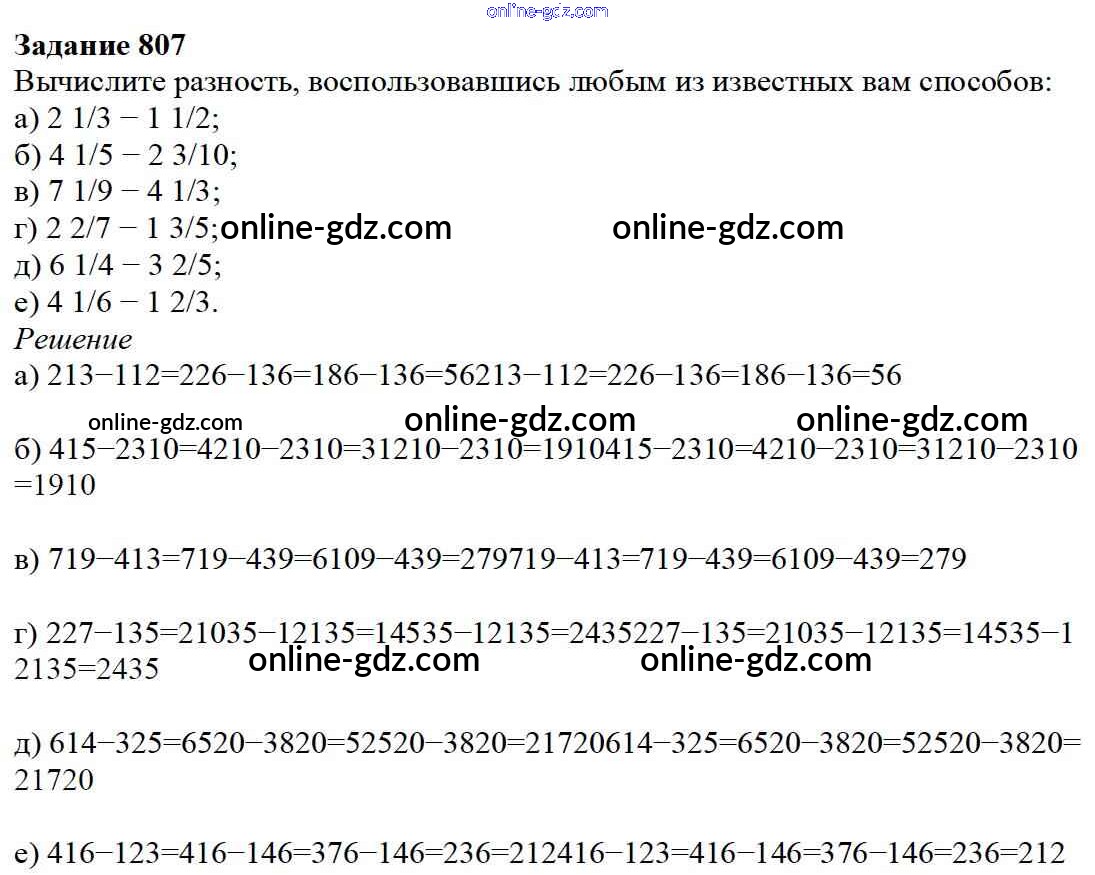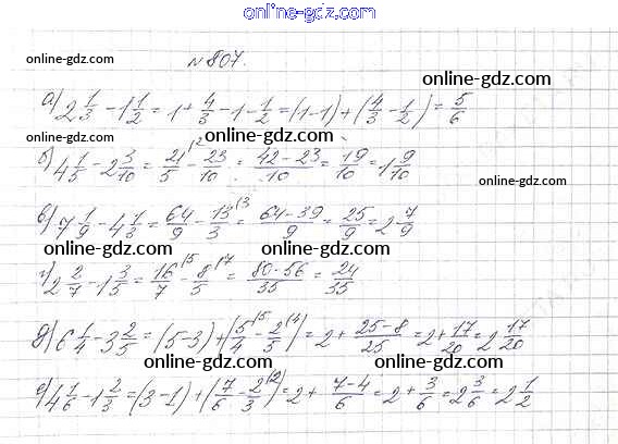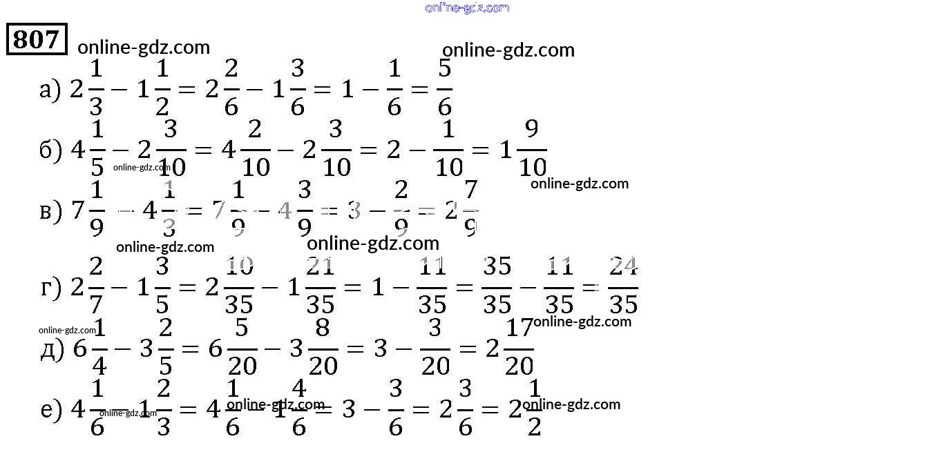 Готовые домашние задания по Математике за 5 класс Учебник Дорофеев, Шарыгин 2015 - 9.3. Сложение и вычитание смешанных дробей Глава 9. Действия с дробями 807