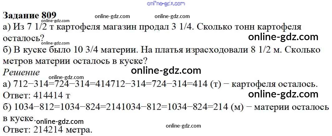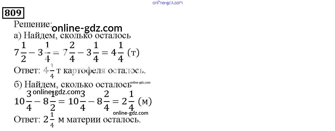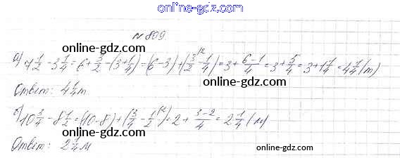 Готовые домашние задания по Математике за 5 класс Учебник Дорофеев, Шарыгин 2015 - 9.3. Сложение и вычитание смешанных дробей Глава 9. Действия с дробями 809