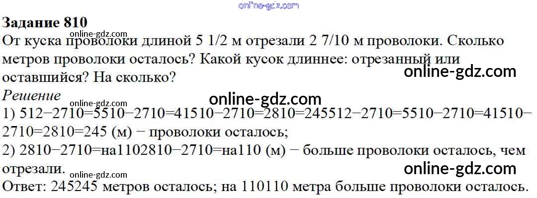 Готовые домашние задания по Математике за 5 класс Учебник Дорофеев, Шарыгин 2015 - 9.3. Сложение и вычитание смешанных дробей Глава 9. Действия с дробями 810