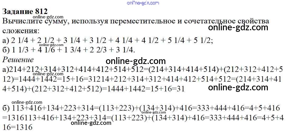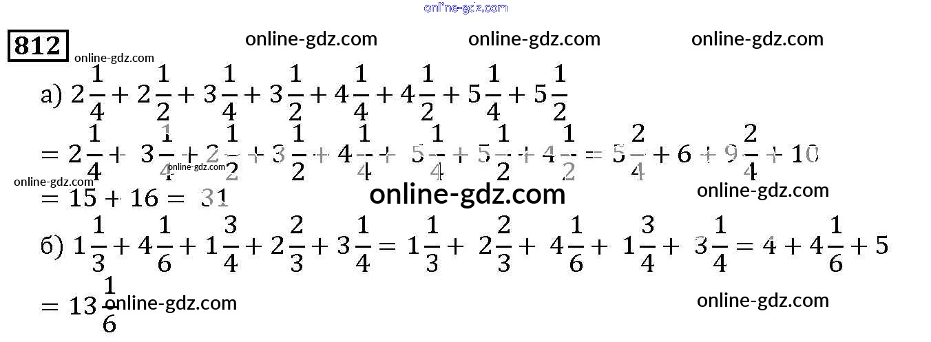 Готовые домашние задания по Математике за 5 класс Учебник Дорофеев, Шарыгин 2015 - 9.3. Сложение и вычитание смешанных дробей Глава 9. Действия с дробями 812