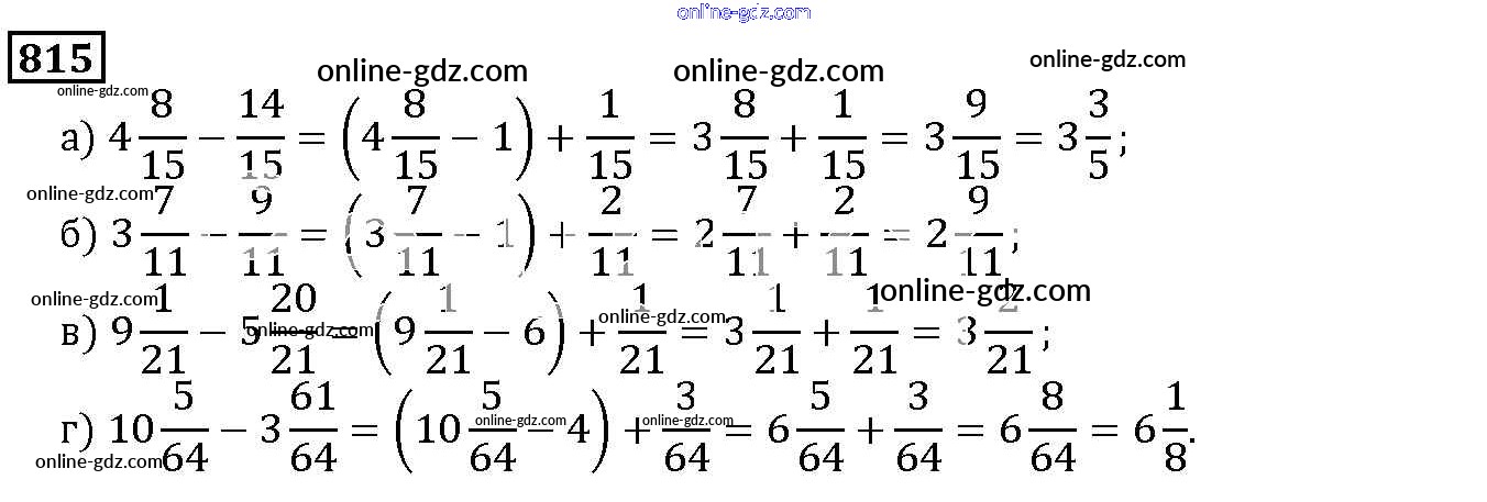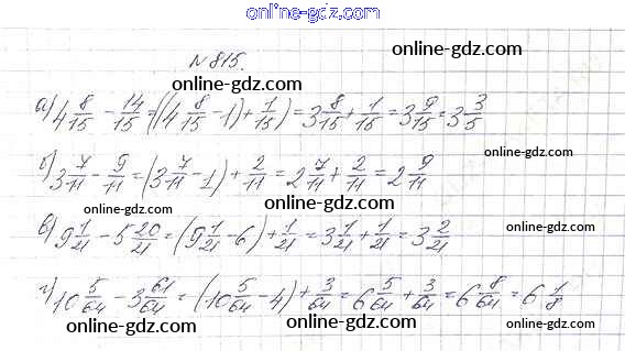 Готовые домашние задания по Математике за 5 класс Учебник Дорофеев, Шарыгин 2015 - 9.3. Сложение и вычитание смешанных дробей Глава 9. Действия с дробями 815