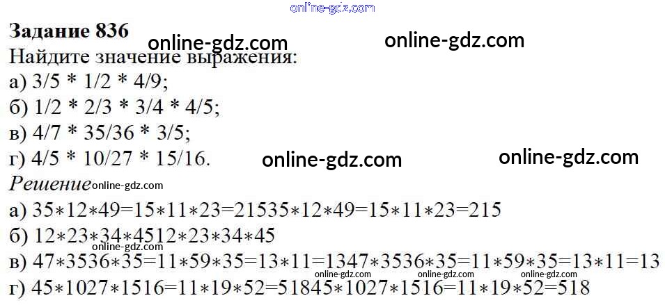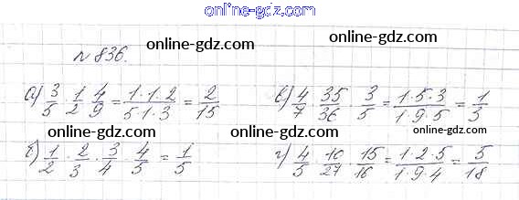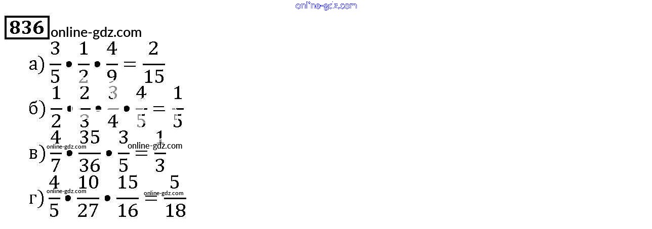Готовые домашние задания по Математике за 5 класс Учебник Дорофеев, Шарыгин 2015 - 9.4. Умножение дробей Глава 9. Действия с дробями 836