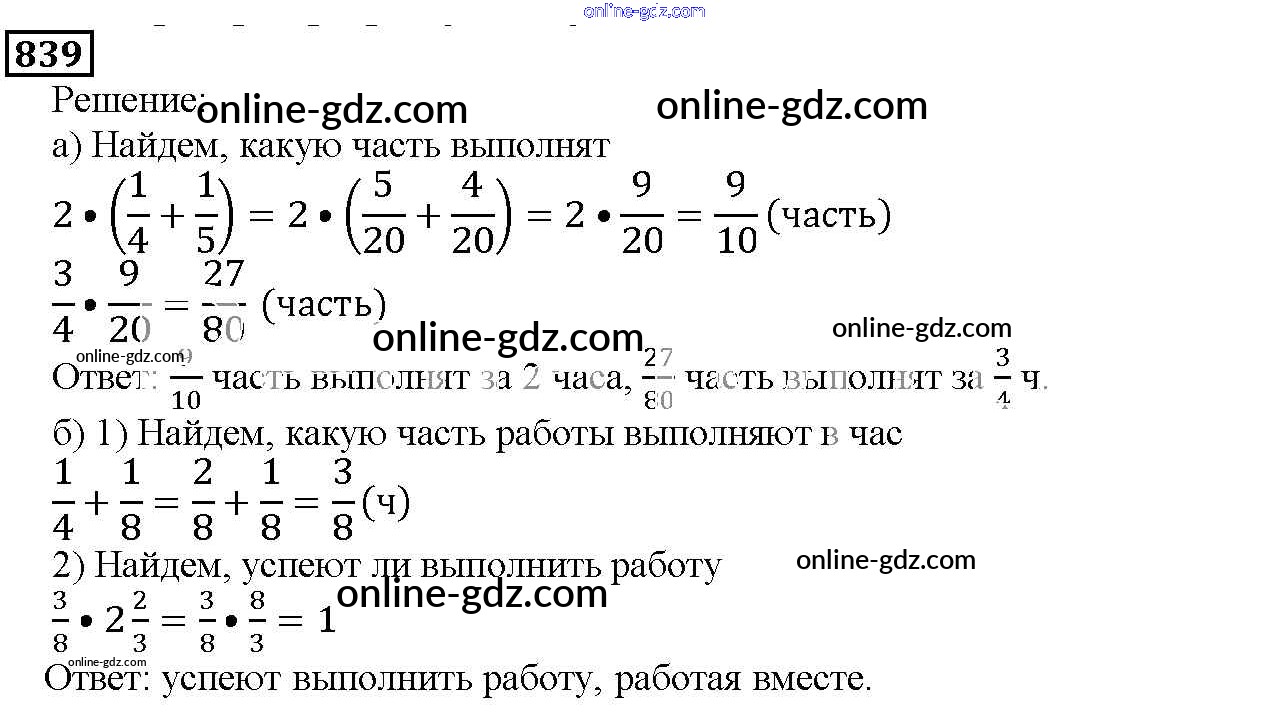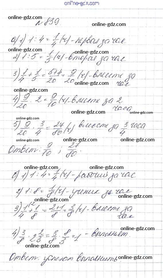 Готовые домашние задания по Математике за 5 класс Учебник Дорофеев, Шарыгин 2015 - 9.4. Умножение дробей Глава 9. Действия с дробями 839