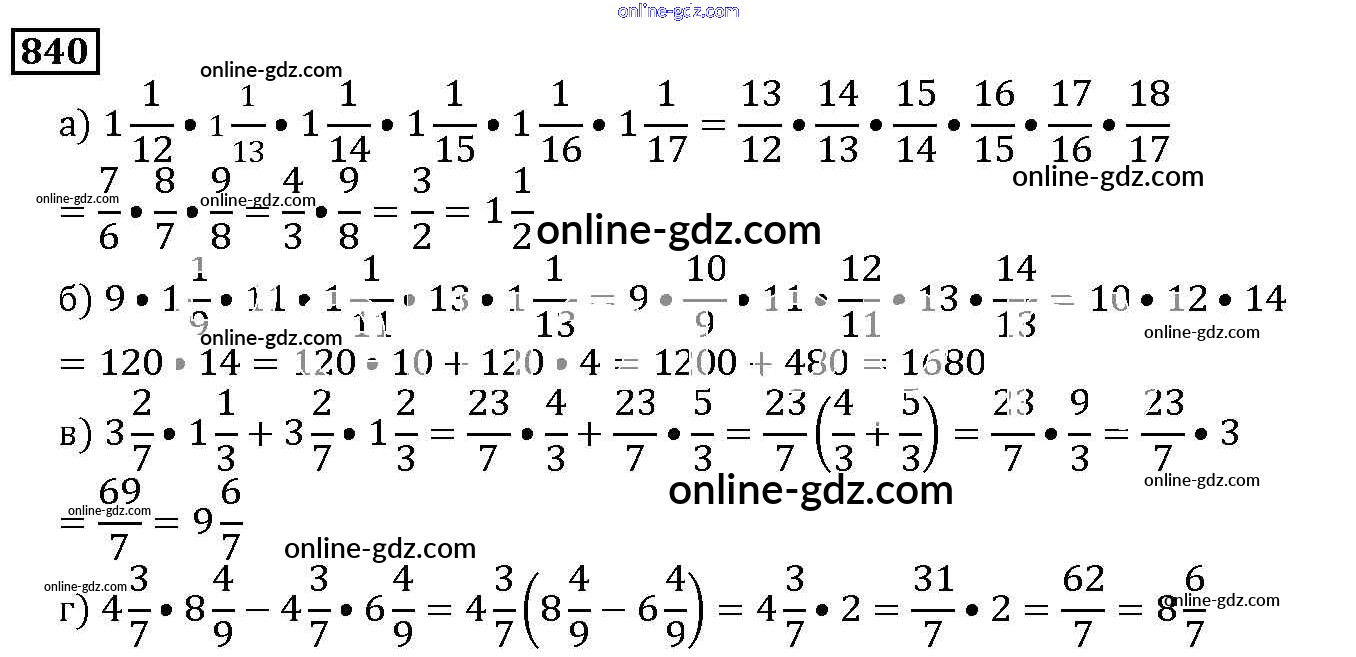Готовые домашние задания по Математике за 5 класс Учебник Дорофеев, Шарыгин 2015 - 9.4. Умножение дробей Глава 9. Действия с дробями 840