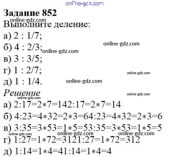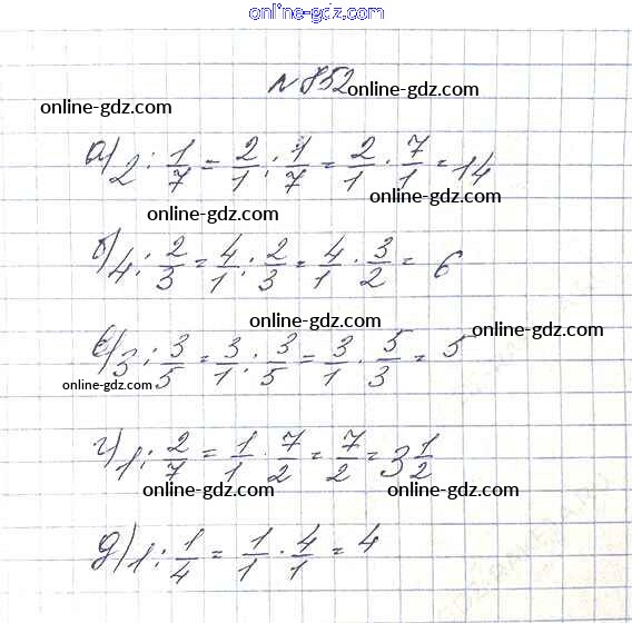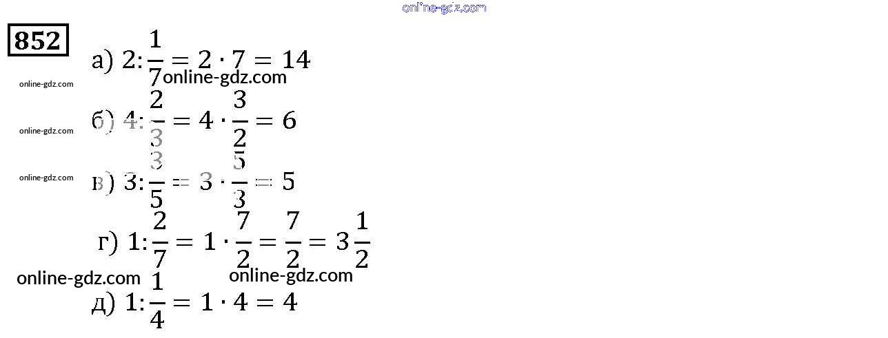Готовые домашние задания по Математике за 5 класс Учебник Дорофеев, Шарыгин 2015 - 9.5. Деление дробей Глава 9. Действия с дробями 852