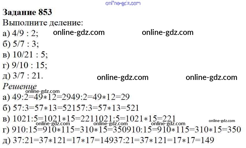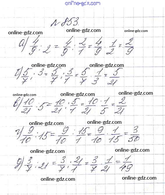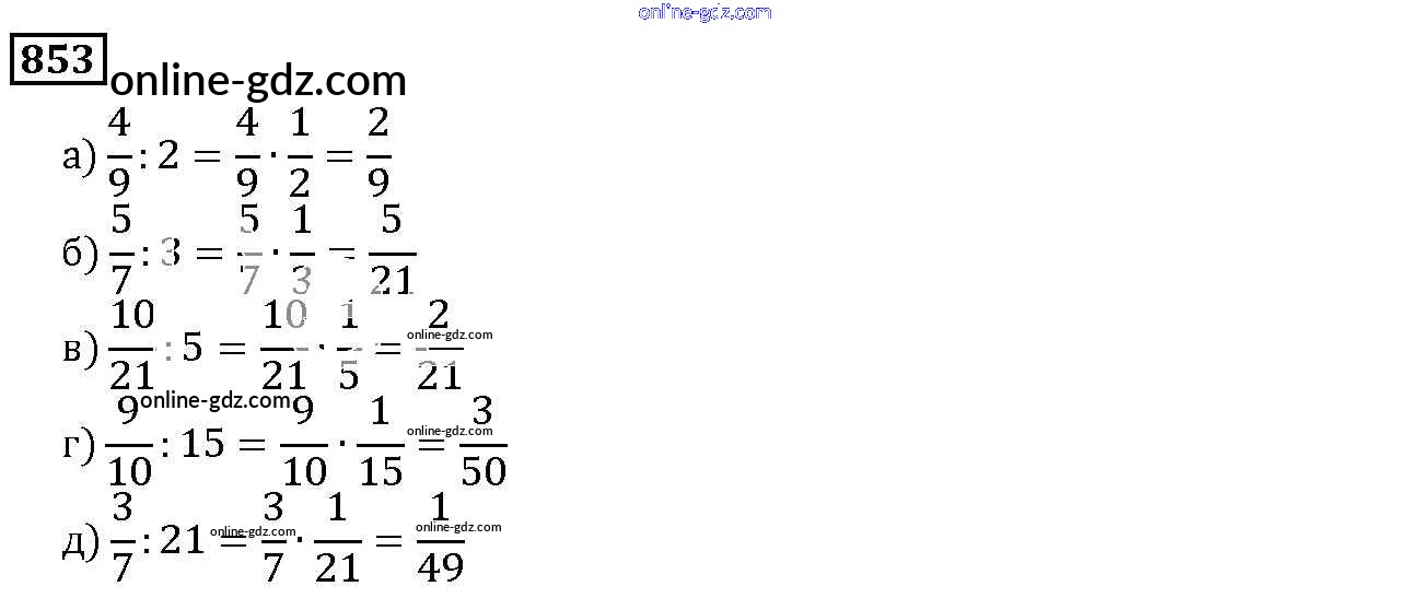 Готовые домашние задания по Математике за 5 класс Учебник Дорофеев, Шарыгин 2015 - 9.5. Деление дробей Глава 9. Действия с дробями 853