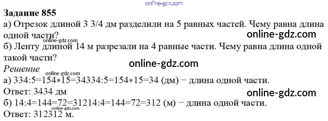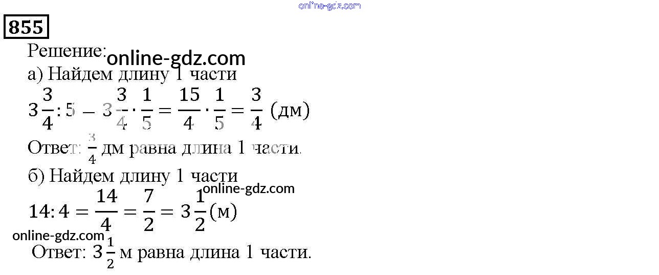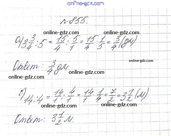 Готовые домашние задания по Математике за 5 класс Учебник Дорофеев, Шарыгин 2015 - 9.5. Деление дробей Глава 9. Действия с дробями 855