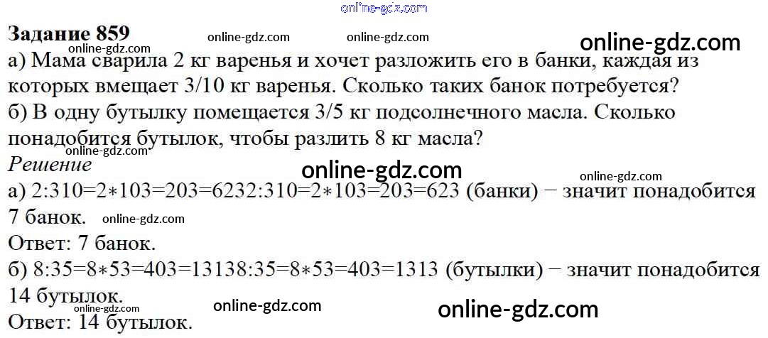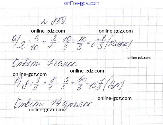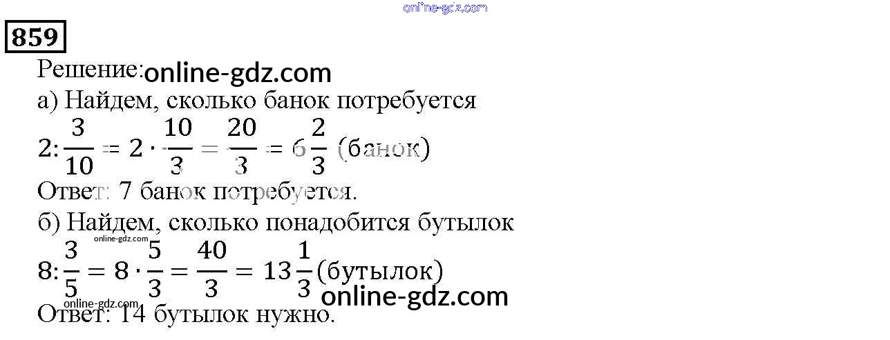 Готовые домашние задания по Математике за 5 класс Учебник Дорофеев, Шарыгин 2015 - 9.5. Деление дробей Глава 9. Действия с дробями 859