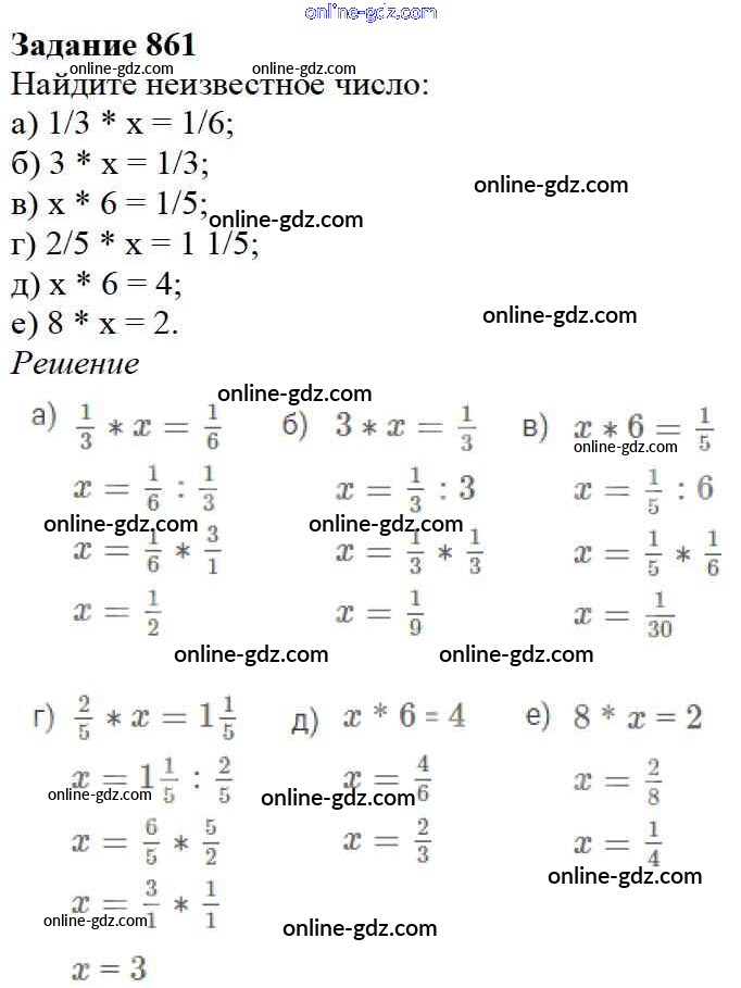 Готовые домашние задания по Математике за 5 класс Учебник Дорофеев, Шарыгин 2015 - 9.5. Деление дробей Глава 9. Действия с дробями 861