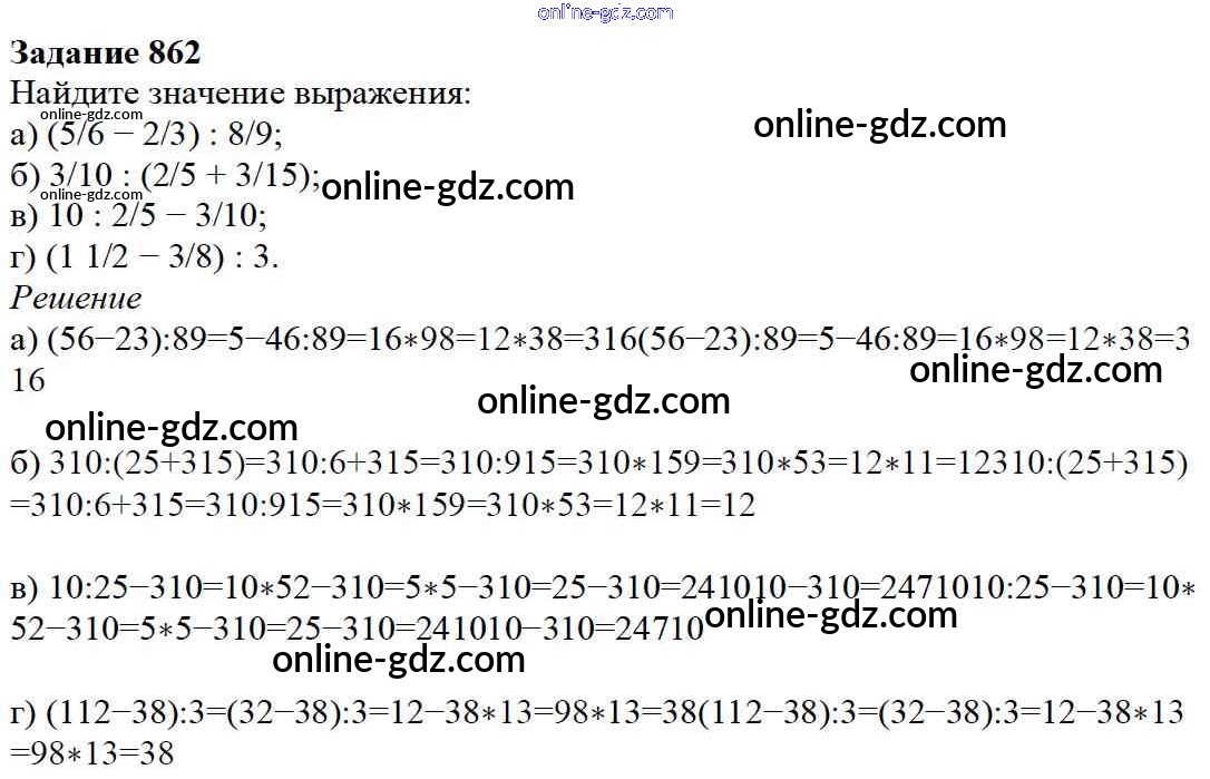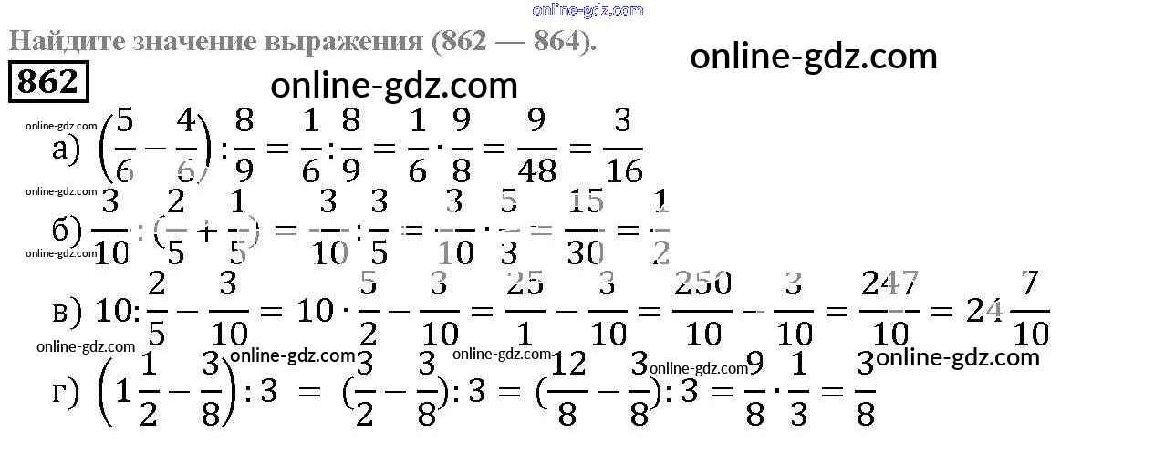 Готовые домашние задания по Математике за 5 класс Учебник Дорофеев, Шарыгин 2015 - 9.5. Деление дробей Глава 9. Действия с дробями 862