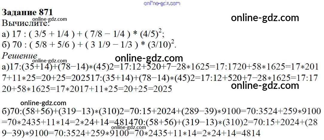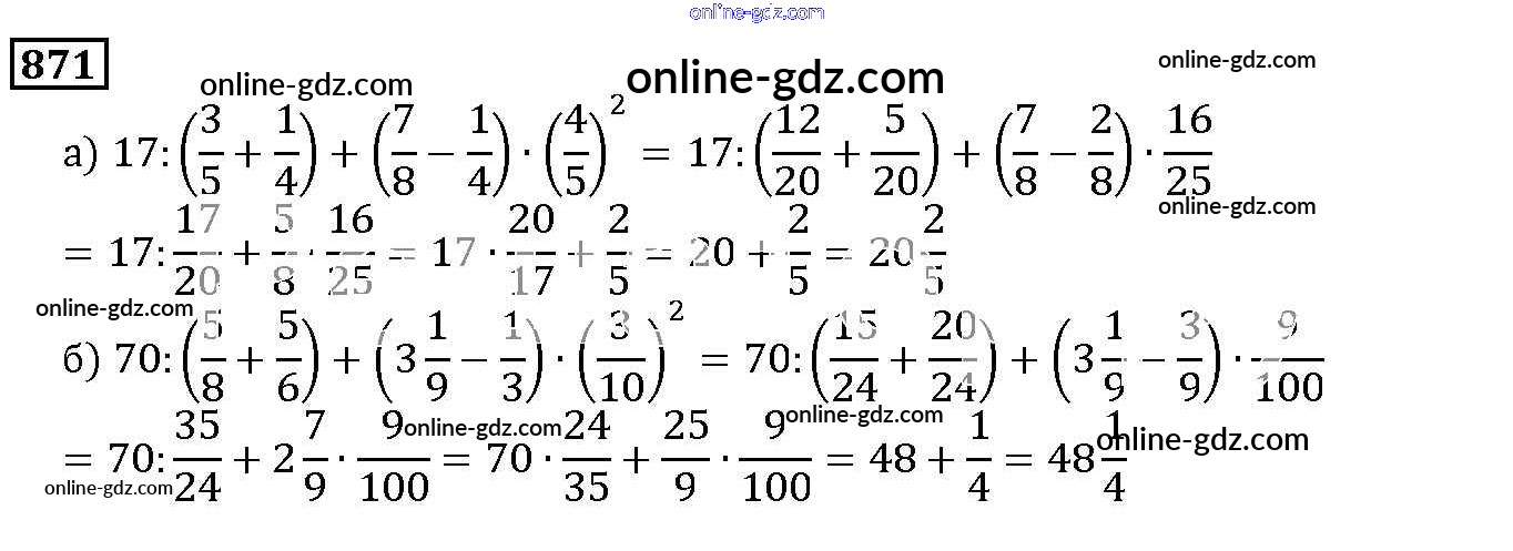 Готовые домашние задания по Математике за 5 класс Учебник Дорофеев, Шарыгин 2015 - 9.5. Деление дробей Глава 9. Действия с дробями 871