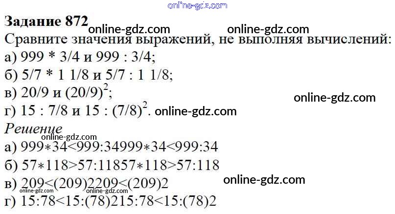 Готовые домашние задания по Математике за 5 класс Учебник Дорофеев, Шарыгин 2015 - 9.5. Деление дробей Глава 9. Действия с дробями 872
