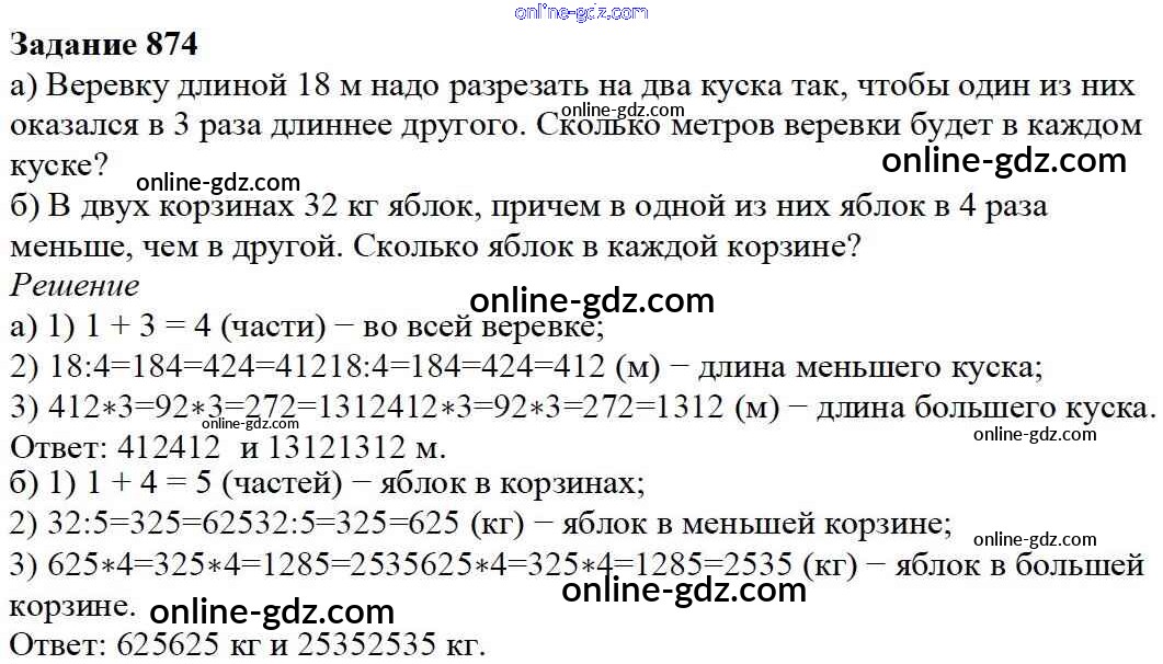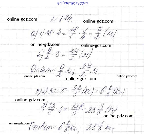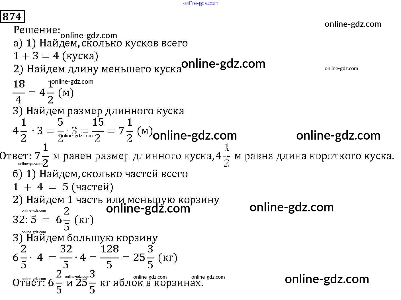 Готовые домашние задания по Математике за 5 класс Учебник Дорофеев, Шарыгин 2015 - 9.5. Деление дробей Глава 9. Действия с дробями 874