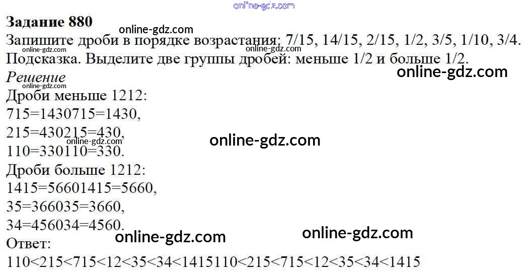 Готовые домашние задания по Математике за 5 класс Учебник Дорофеев, Шарыгин 2015 - 9.5. Деление дробей Глава 9. Действия с дробями 880