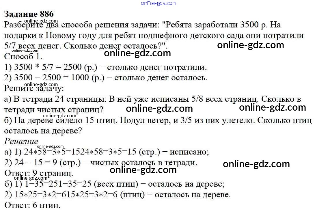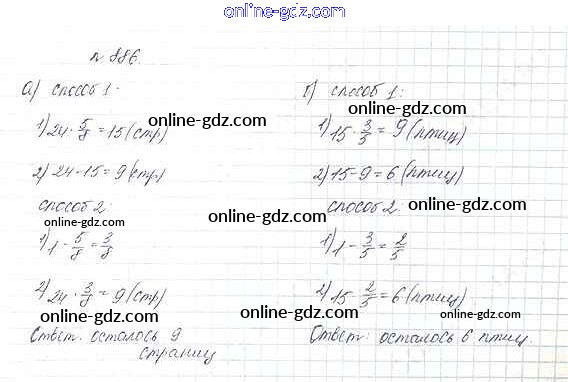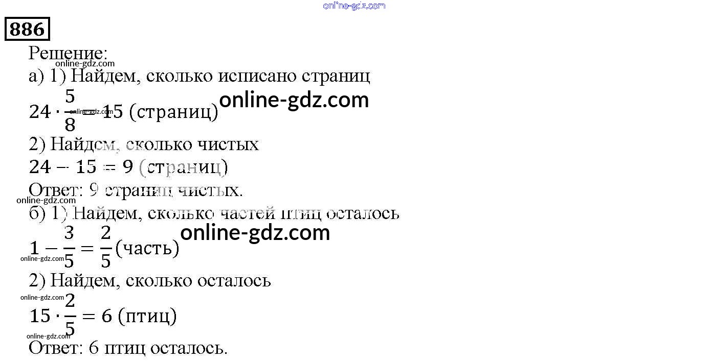 Готовые домашние задания по Математике за 5 класс Учебник Дорофеев, Шарыгин 2015 - 9.6. Нахождение части целого и целого по части Глава 9. Действия с дробями 886