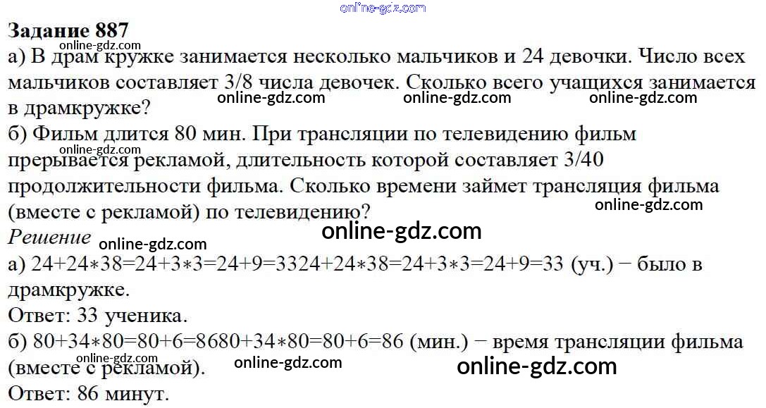 Готовые домашние задания по Математике за 5 класс Учебник Дорофеев, Шарыгин 2015 - 9.6. Нахождение части целого и целого по части Глава 9. Действия с дробями 887