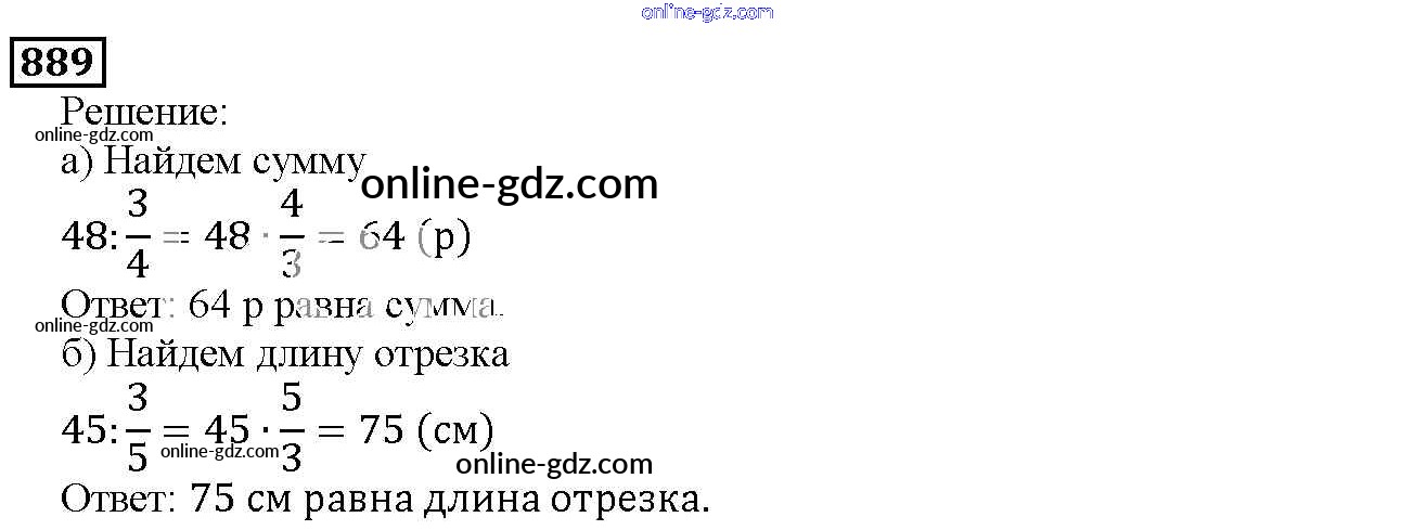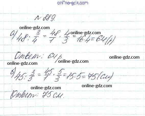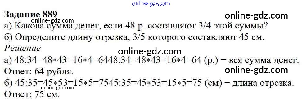 Готовые домашние задания по Математике за 5 класс Учебник Дорофеев, Шарыгин 2015 - 9.6. Нахождение части целого и целого по части Глава 9. Действия с дробями 889