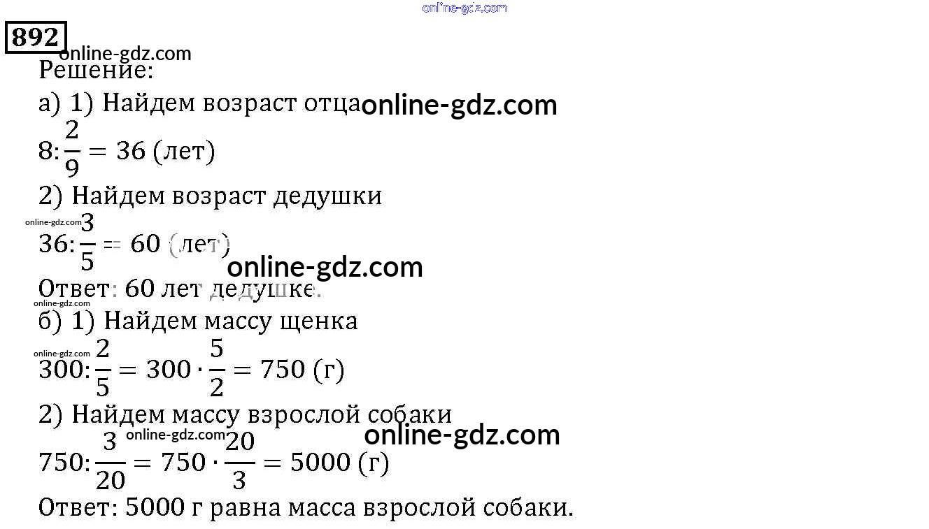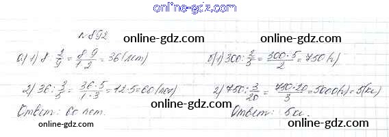 Готовые домашние задания по Математике за 5 класс Учебник Дорофеев, Шарыгин 2015 - 9.6. Нахождение части целого и целого по части Глава 9. Действия с дробями 892
