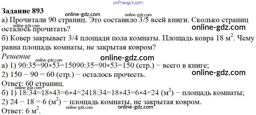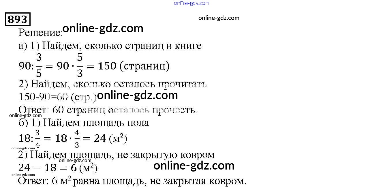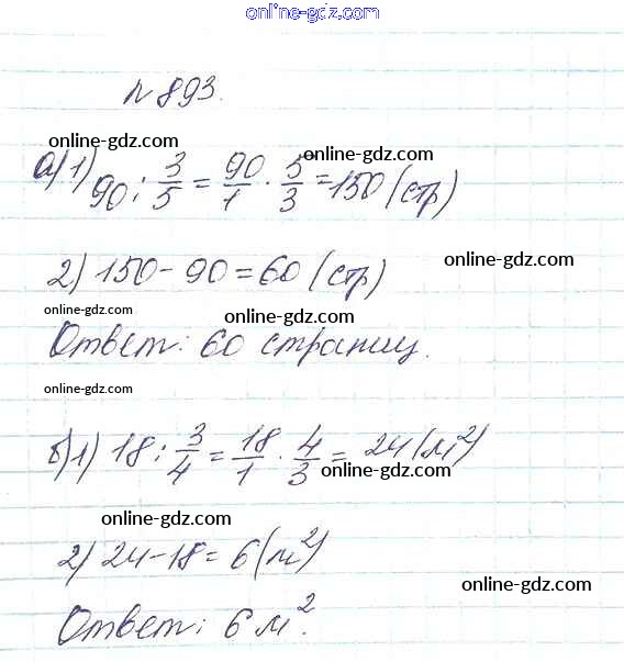 Готовые домашние задания по Математике за 5 класс Учебник Дорофеев, Шарыгин 2015 - 9.6. Нахождение части целого и целого по части Глава 9. Действия с дробями 893
