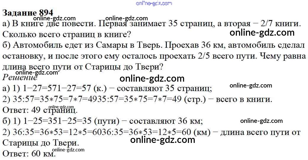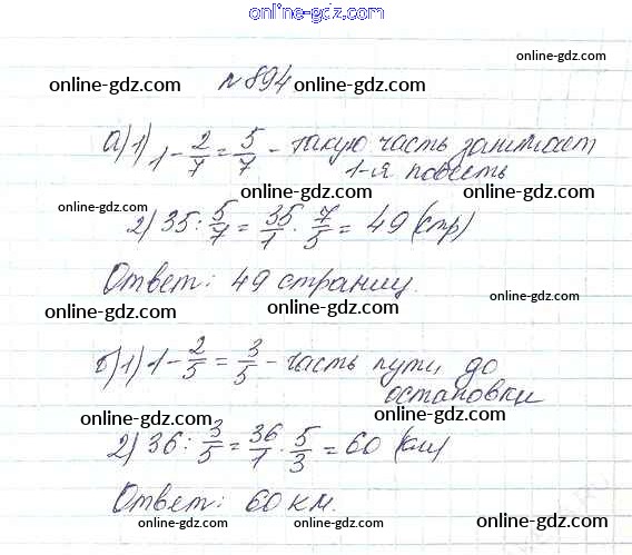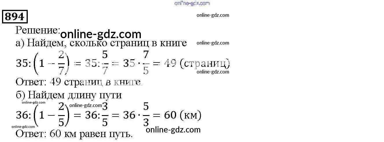 Готовые домашние задания по Математике за 5 класс Учебник Дорофеев, Шарыгин 2015 - 9.6. Нахождение части целого и целого по части Глава 9. Действия с дробями 894