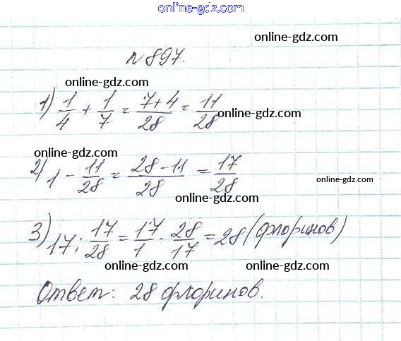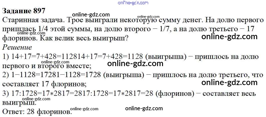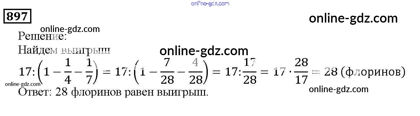 Готовые домашние задания по Математике за 5 класс Учебник Дорофеев, Шарыгин 2015 - 9.6. Нахождение части целого и целого по части Глава 9. Действия с дробями 897