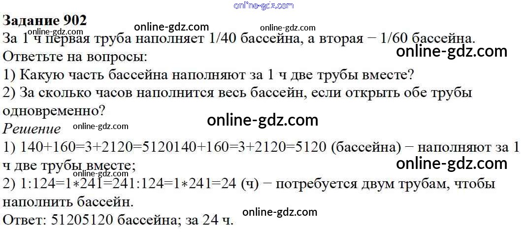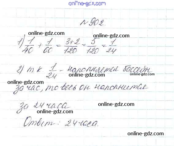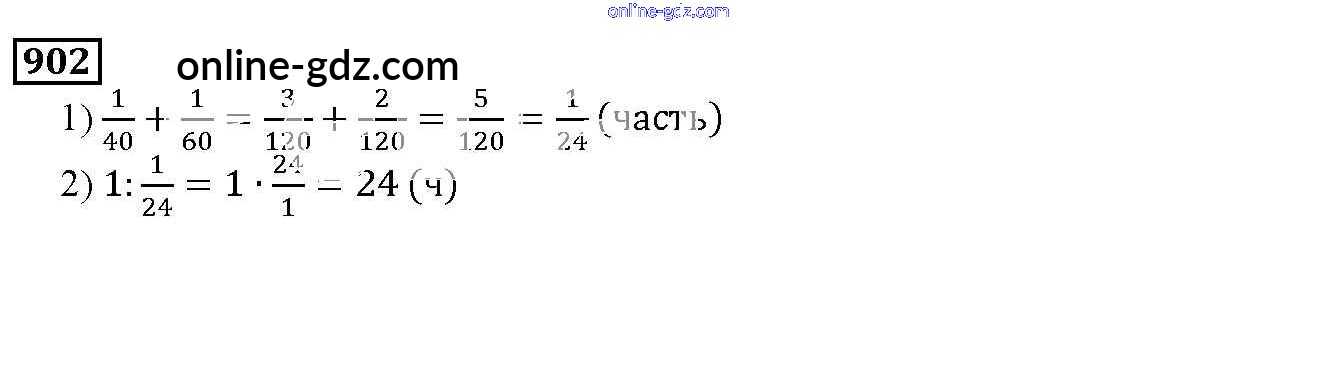 Готовые домашние задания по Математике за 5 класс Учебник Дорофеев, Шарыгин 2015 - 9.7. Задачи на совместную работу Глава 9. Действия с дробями 902