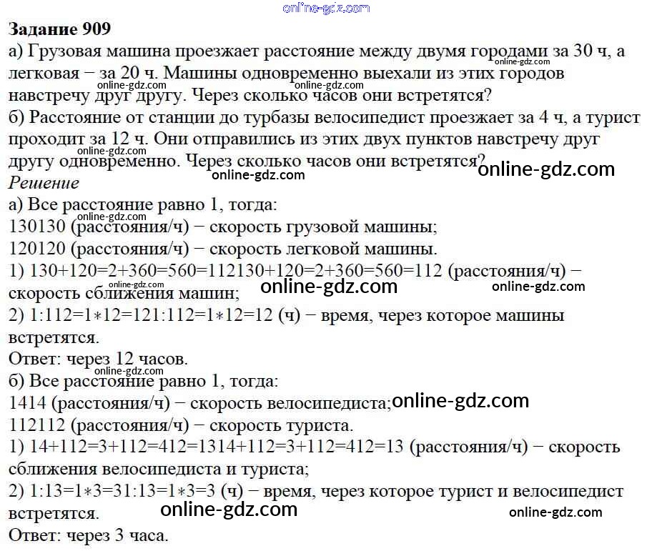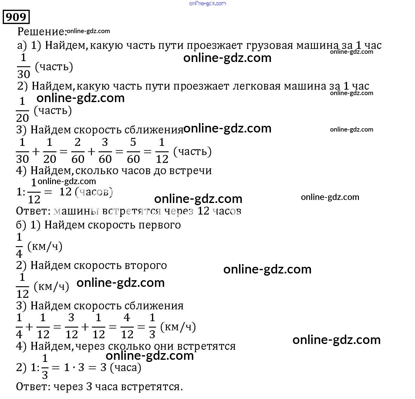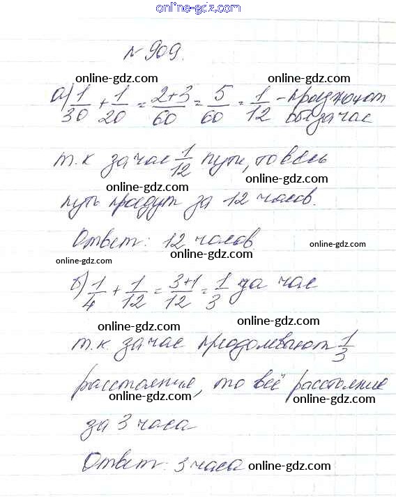Готовые домашние задания по Математике за 5 класс Учебник Дорофеев, Шарыгин 2015 - 9.7. Задачи на совместную работу Глава 9. Действия с дробями 909