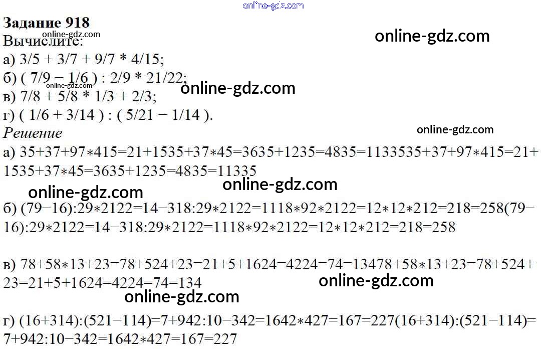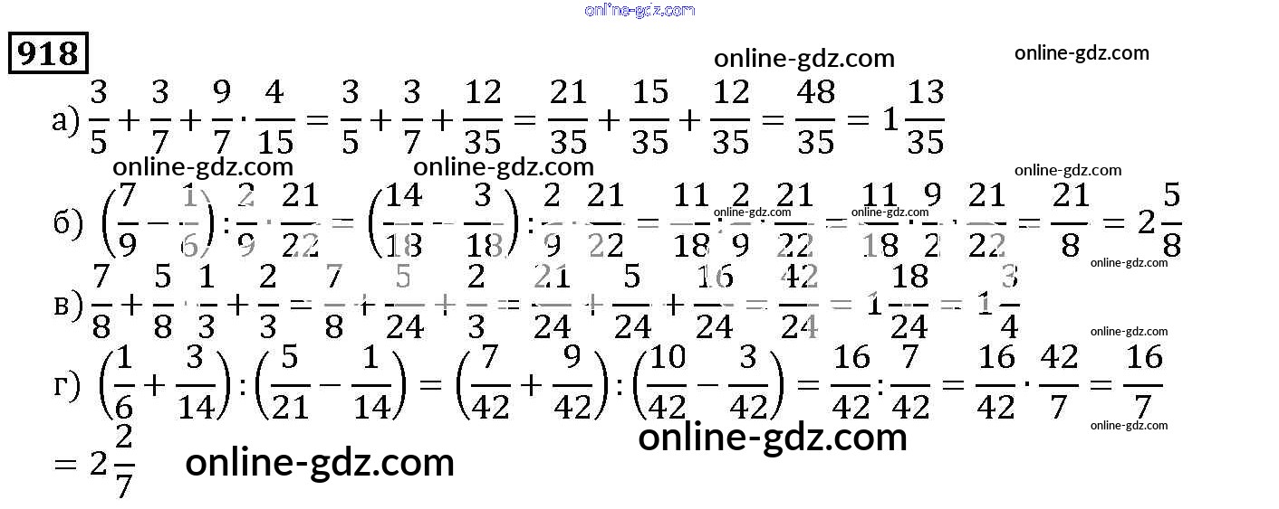 Готовые домашние задания по Математике за 5 класс Учебник Дорофеев, Шарыгин 2015 - 9.7. Задачи на совместную работу Глава 9. Действия с дробями 918