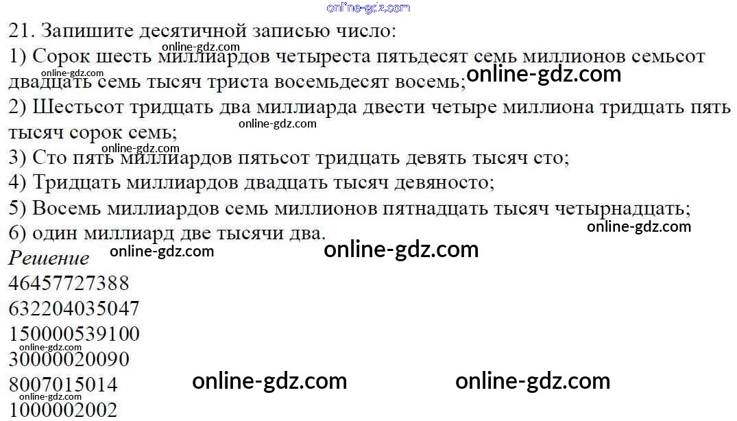Готовые домашние задания по Математике за 5 класс Учебник Мерзляк, Полонский Алгоритм успеха 2016 - §2. Цифры. Десятичная запись натуральных чисел Глава 1. Натуральные числа 21