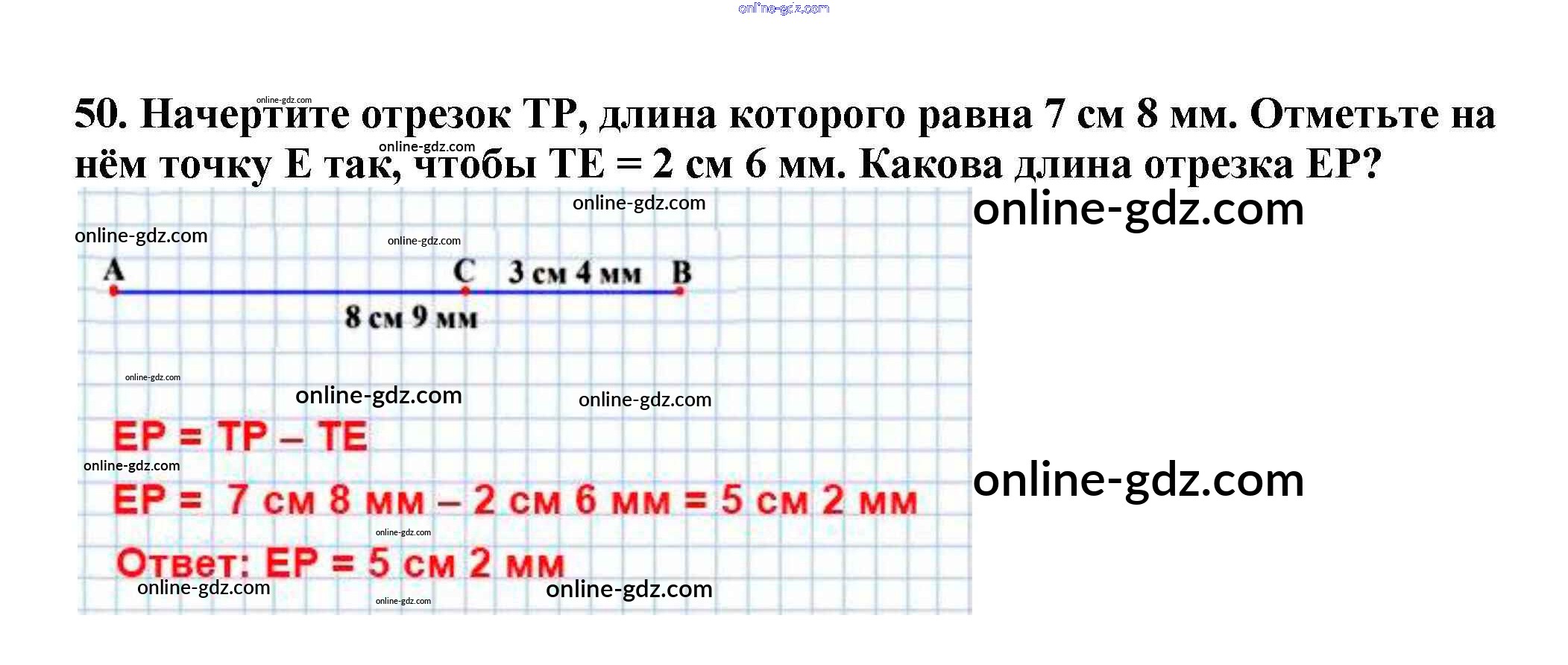 Готовые домашние задания по Математике за 5 класс Учебник Мерзляк, Полонский Алгоритм успеха 2016 - §3. Отрезок. Длина отрезка Глава 1. Натуральные числа 50