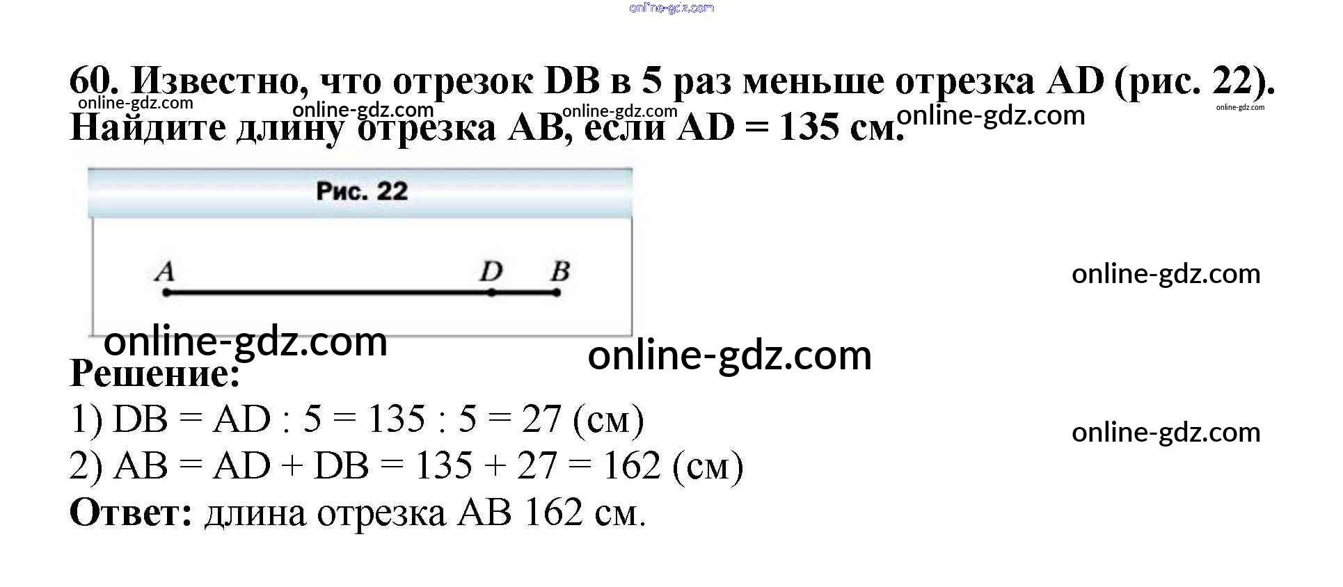 Готовые домашние задания по Математике за 5 класс Учебник Мерзляк, Полонский Алгоритм успеха 2016 - §3. Отрезок. Длина отрезка Глава 1. Натуральные числа 60