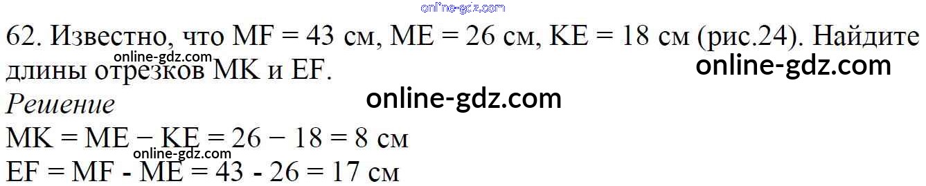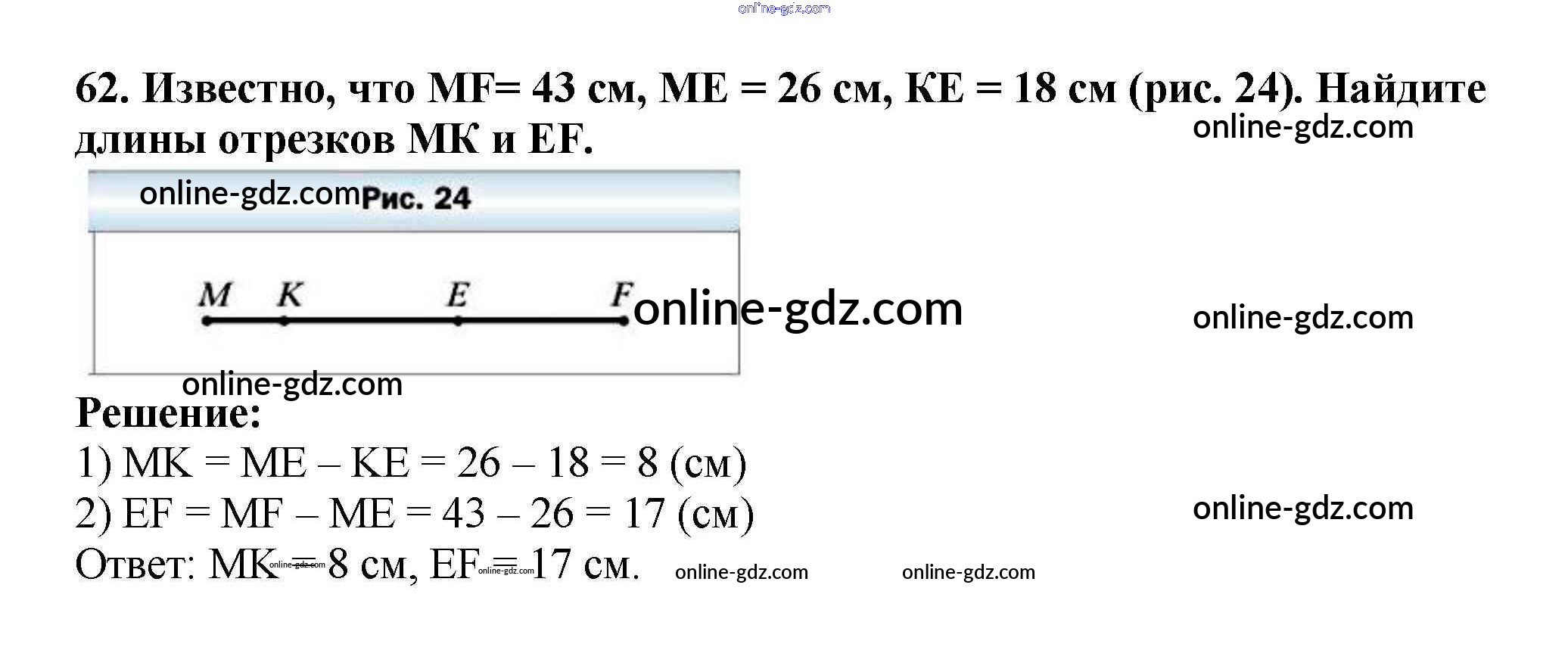 Готовые домашние задания по Математике за 5 класс Учебник Мерзляк, Полонский Алгоритм успеха 2016 - §3. Отрезок. Длина отрезка Глава 1. Натуральные числа 62