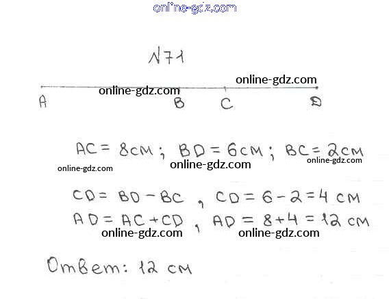 Готовые домашние задания по Математике за 5 класс Учебник Мерзляк, Полонский Алгоритм успеха 2016 - §3. Отрезок. Длина отрезка Глава 1. Натуральные числа 71