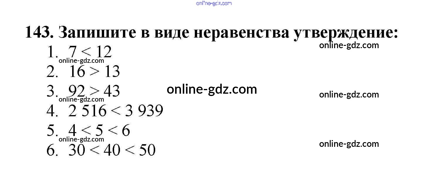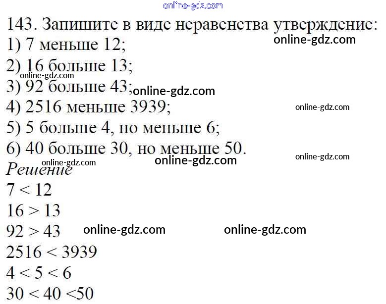 Готовые домашние задания по Математике за 5 класс Учебник Мерзляк, Полонский Алгоритм успеха 2016 - §6. Сравнение натуральных чисел Глава 1. Натуральные числа 143