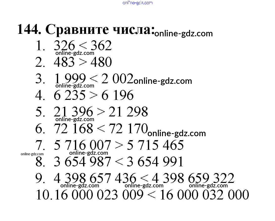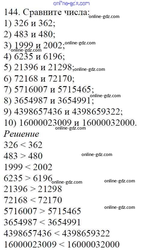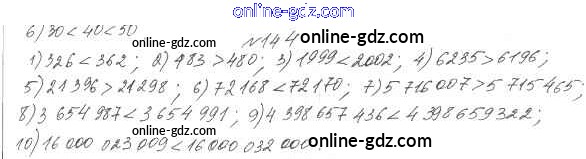 Готовые домашние задания по Математике за 5 класс Учебник Мерзляк, Полонский Алгоритм успеха 2016 - §6. Сравнение натуральных чисел Глава 1. Натуральные числа 144
