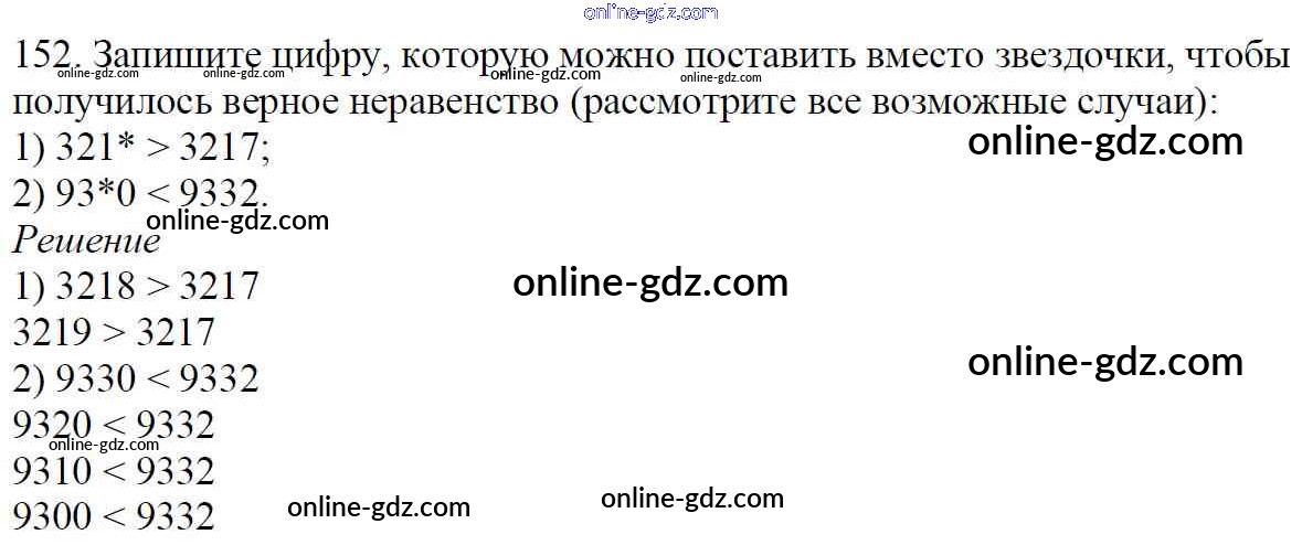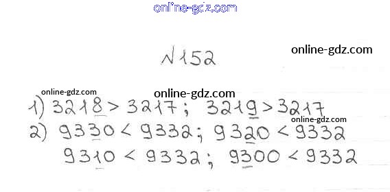 Готовые домашние задания по Математике за 5 класс Учебник Мерзляк, Полонский Алгоритм успеха 2016 - §6. Сравнение натуральных чисел Глава 1. Натуральные числа 152