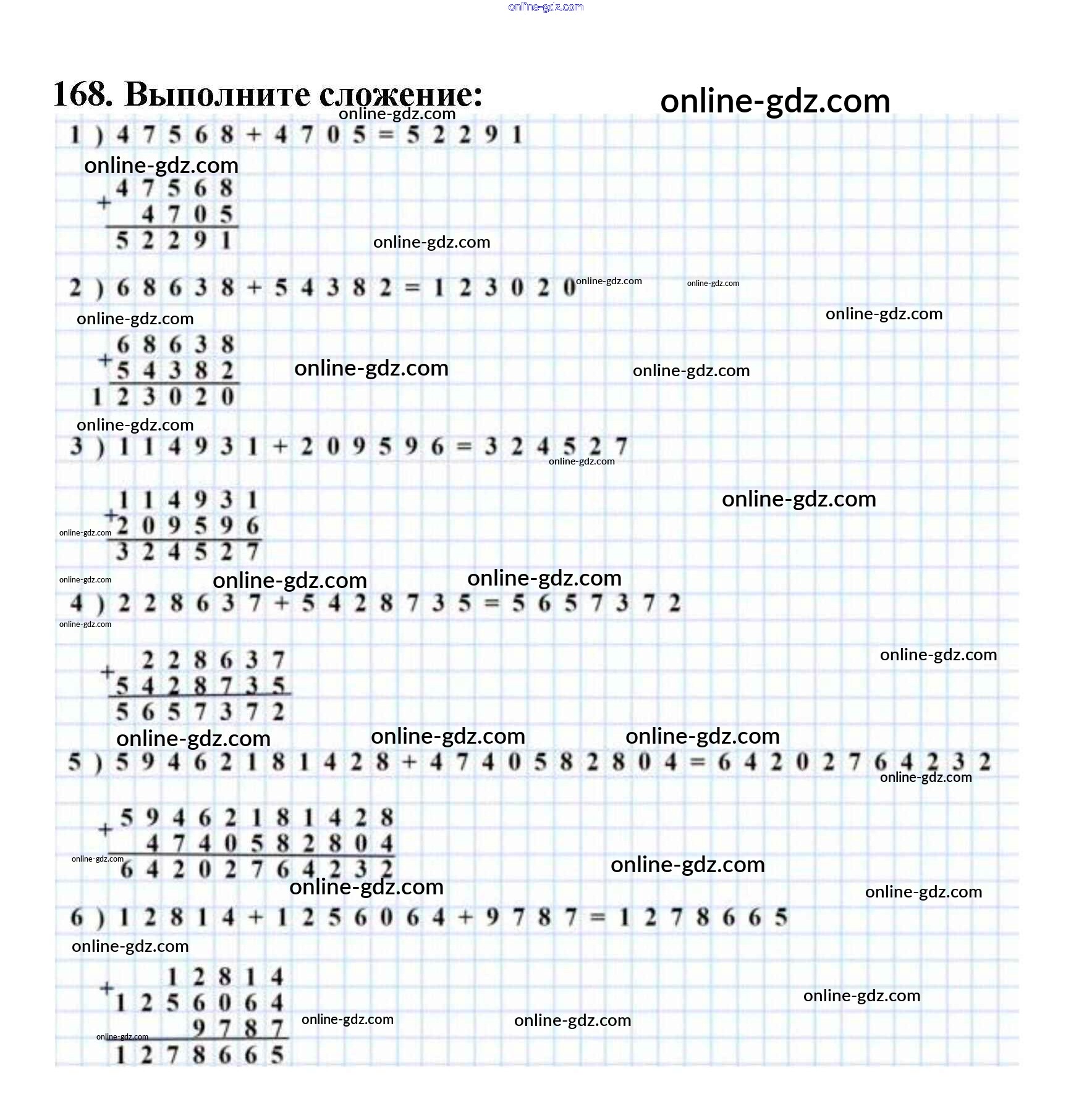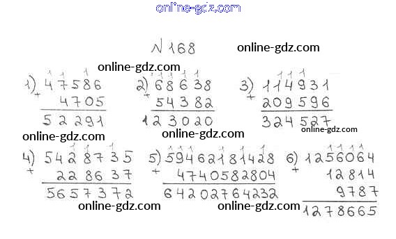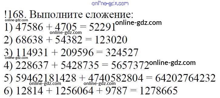 Готовые домашние задания по Математике за 5 класс Учебник Мерзляк, Полонский Алгоритм успеха 2016 - § 7. Сложение натуральных чисел. Свойства сложения Глава 2. Сложение и вычитание натуральных чисел 168