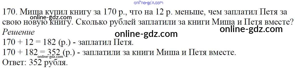Готовые домашние задания по Математике за 5 класс Учебник Мерзляк, Полонский Алгоритм успеха 2016 - § 7. Сложение натуральных чисел. Свойства сложения Глава 2. Сложение и вычитание натуральных чисел 170